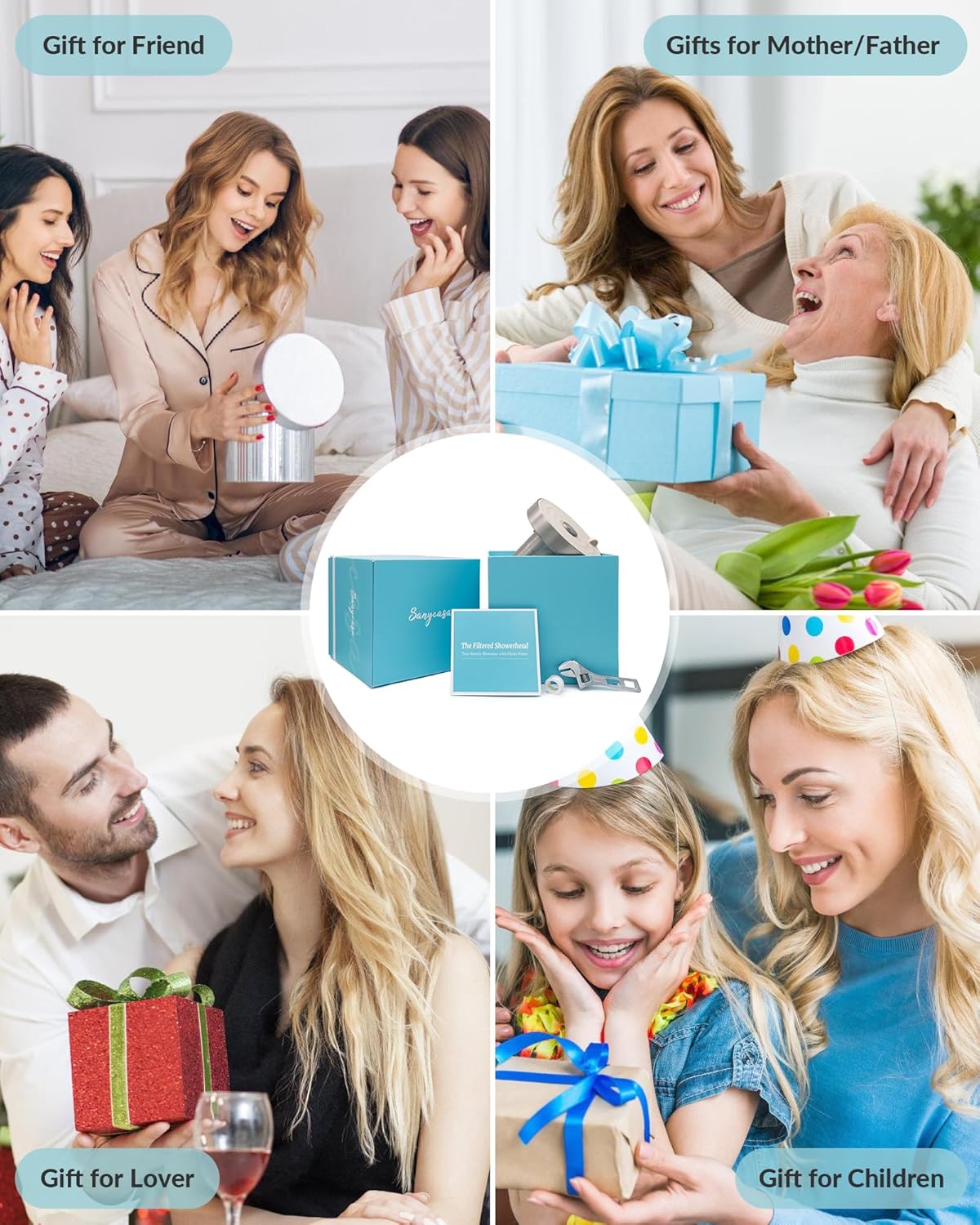 - 【Luxury Gift Set – Installs in 1 Minute】Thoughtfully designed for those who deserve the best. This elegant, skin-friendly shower head not only elevates daily self-care but also makes a meaningful gift for birthdays, Mother’s Day, or housewarmings. (Includes easy-install kit & gift-ready packaging.)