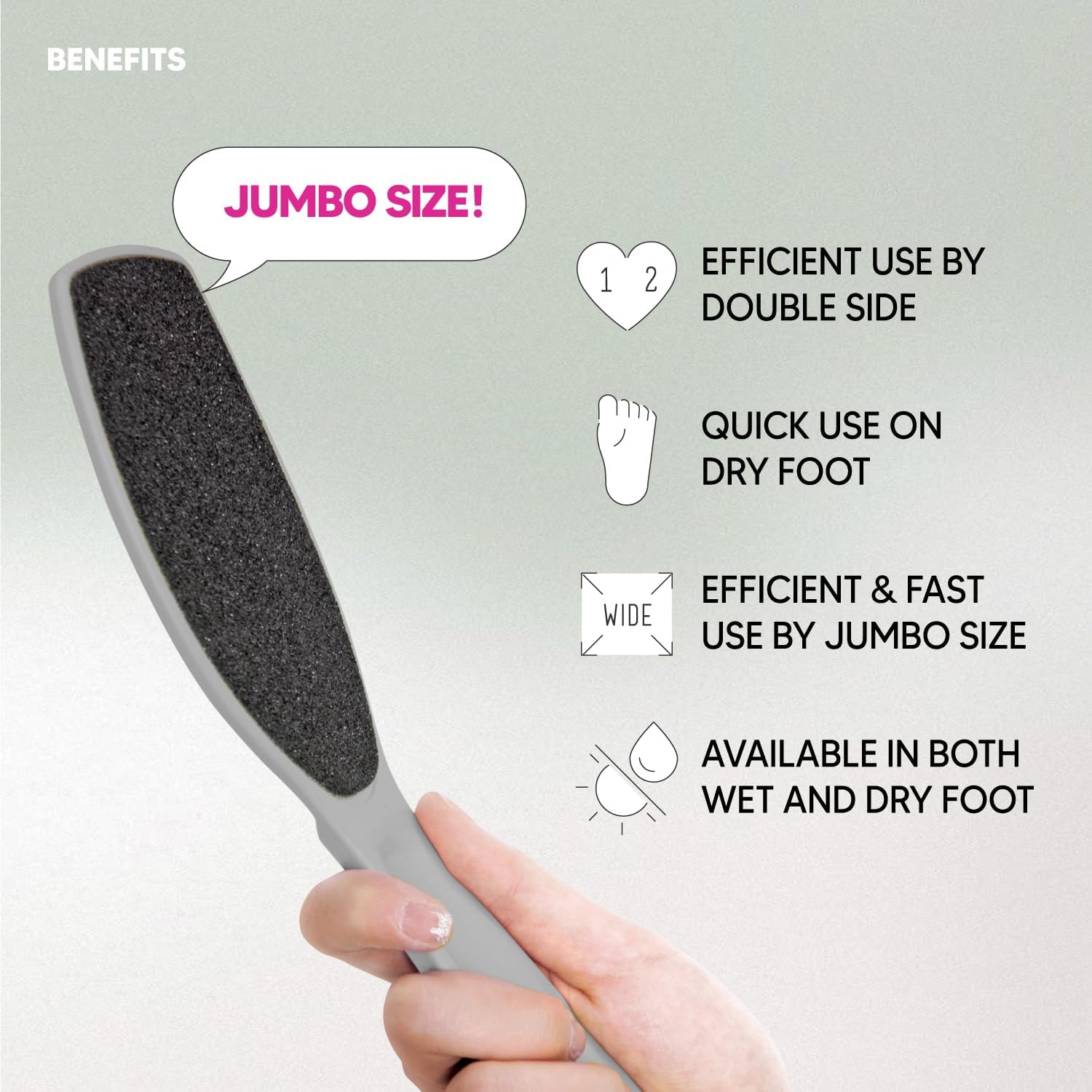 Wide Emery, Double-Sided Pedicure Tool, Colossal Foot File for Men & Women, Effective for Cracked Heel, Callus Remover, Foot Scrubber, Professional, (Gray)