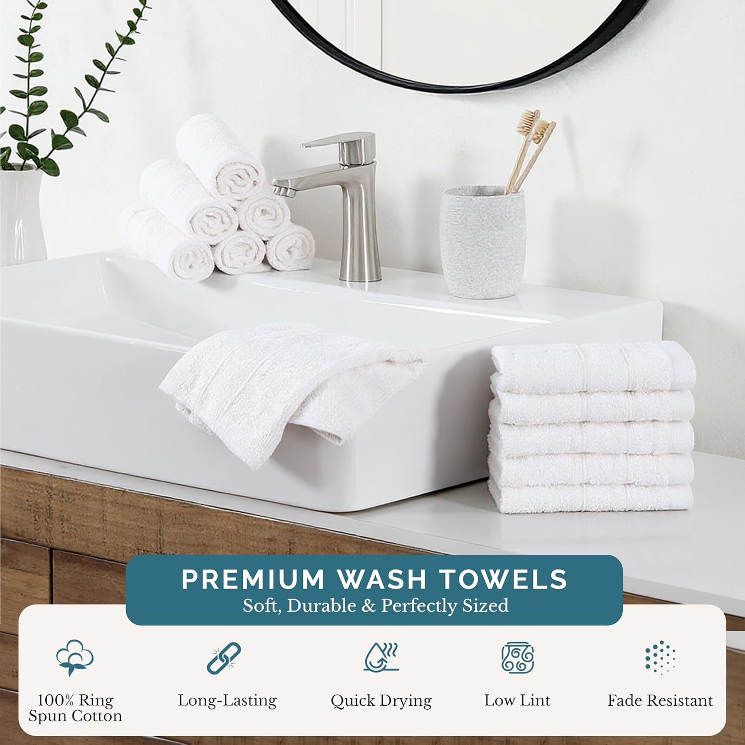 Casa Platino 100% Cotton Washcloths 12 Pack - Spa & Salon Quality Face Towels - Ring Spun, Soft & Absorbent Wash Cloth Rags for Body, Beauty, Home, Gym - Fingertip Towels - 13"x13", White Washcloths