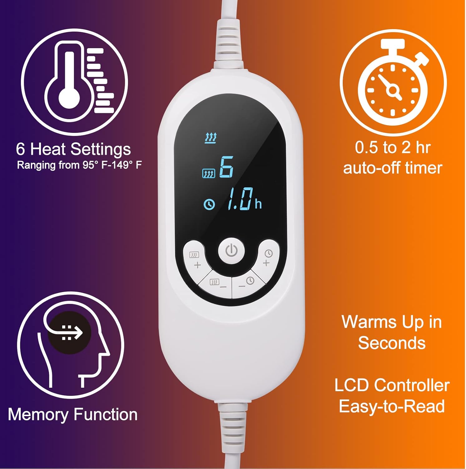 - 【Manage Heat and Time As You Need】:The neck heating pad offers 6 heat settings (104℉-158℉), which meet most pepole's hot compress need. Furthermore,6 auto-off timers (30min, 1H, 1.5H, 2H, 3H, 4H), the neck heating pad allows you to customize the desired temperature and time for heat therapy. It can help you choose the most appropriate heating temperature and timer according to the degree of physical discomfort at any time.