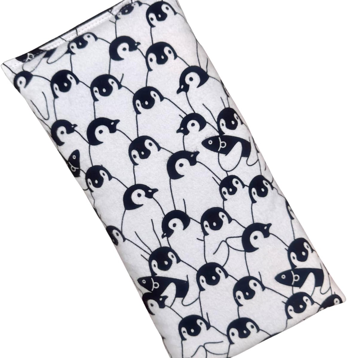 Microwave Heating Pad Filled With Flax Seed and Choice of Dried Herbs, Herbal Cold Pack, Good Size for Back Pain and Cramps, Hot and Cold Therapy, 6" x 12" (Penguin, Chamomile)