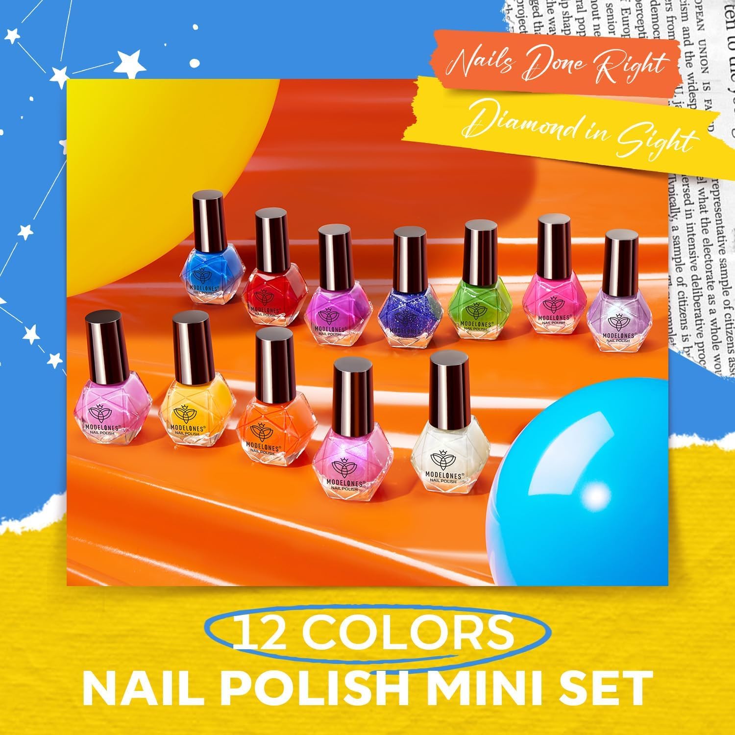 modelones Nail Polish Set, 12 Colors Neon Pink Red Blue Orange Spring Summer Quick Dry Mini Starter Kit, Long Lasting Art DIY Manicure Set at Home for Women Girls