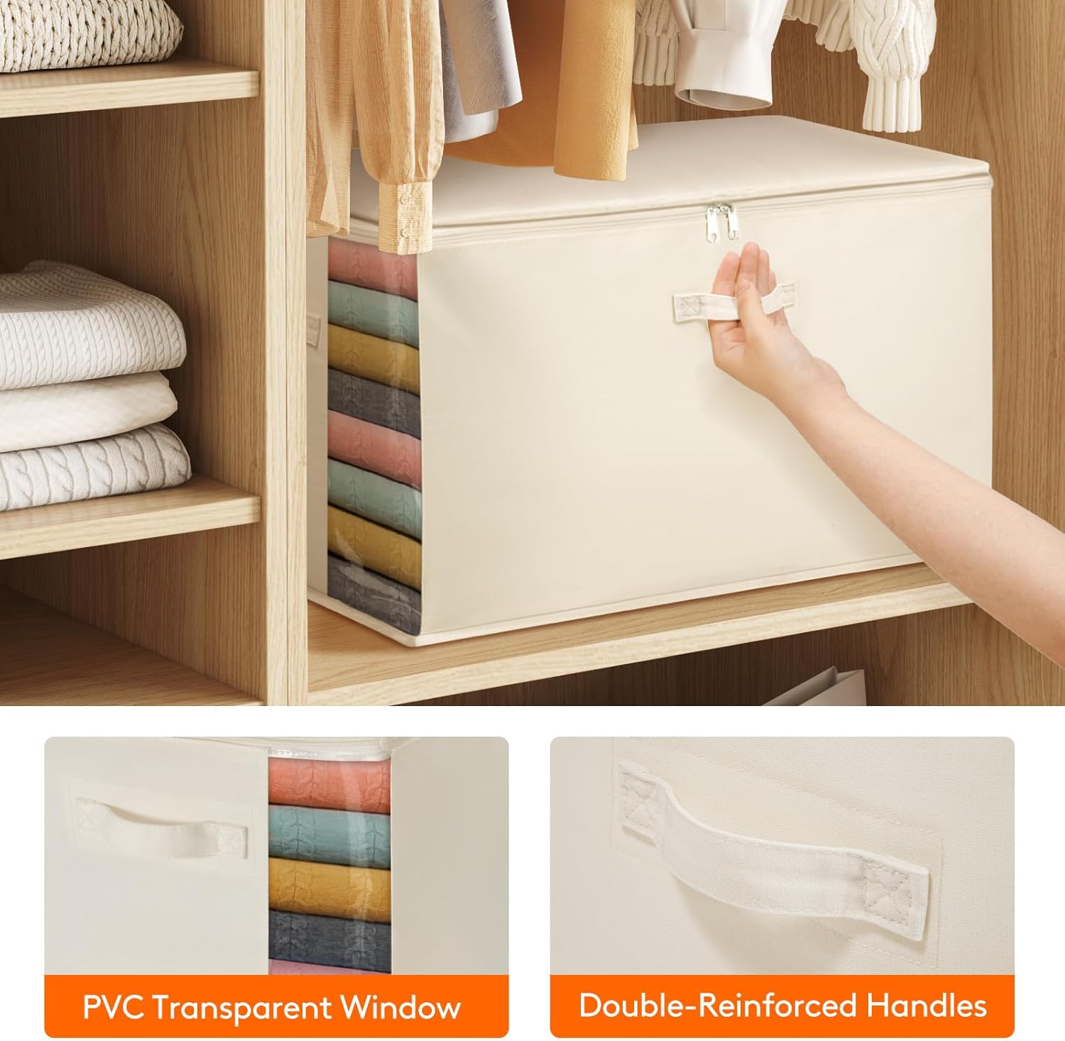Lifewit Large Canvas Cotton Comforter Storage Bags with Zipper 4 Pack, 90L Breathable Foldable Clothing Containers, Linen Sweater Organizers Boxes for Clothes, Blankets, Pillows, Duvets, Bedding