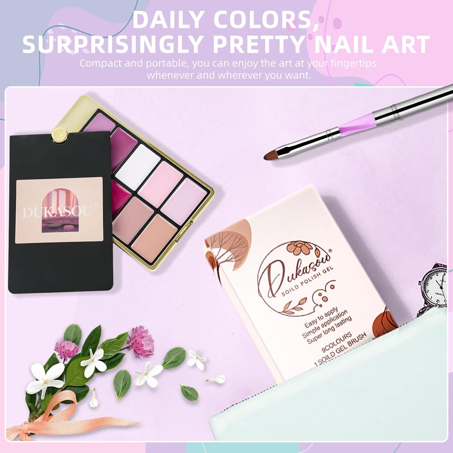 - Solid Cream Gel Polish Palette Set: 9-in-1 solid gel nail polish palette, multiple colors to choose from, can be used alone or with other nail decorations. Comes with professional removable brushes, the best choice for home manicure, say goodbye to expensive salon manicure