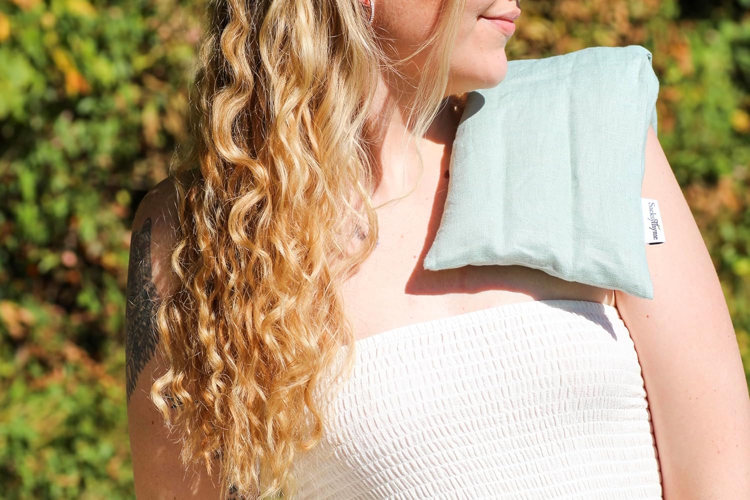 Microwave Heating Pad - 100% Linen Cover, Unscented, Size 18x7, Comforting Heat Pad for Cramps, Back,Neck,Shoulders, Leg Pain, Hot Microwavable Heat Pack, Color: Silver Sage, Made in USA