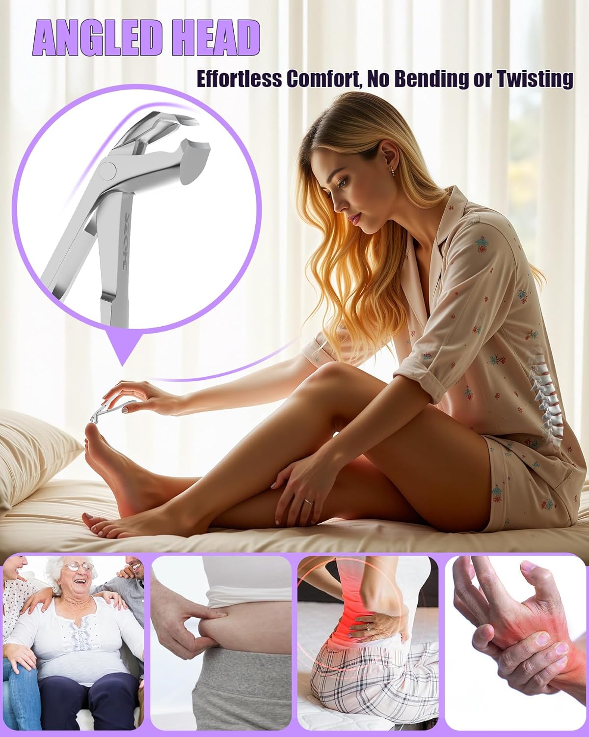 - 2025 Upgrade Angled Blade: This 2025 upgraded toe nail clippers for thick nails for seniors includes a precision-angled blade to minimize wrist rotation, helping you trim nails without twisting your body. Perfect for anyone seeking easy-to-use, fingernail clippers for men or women.