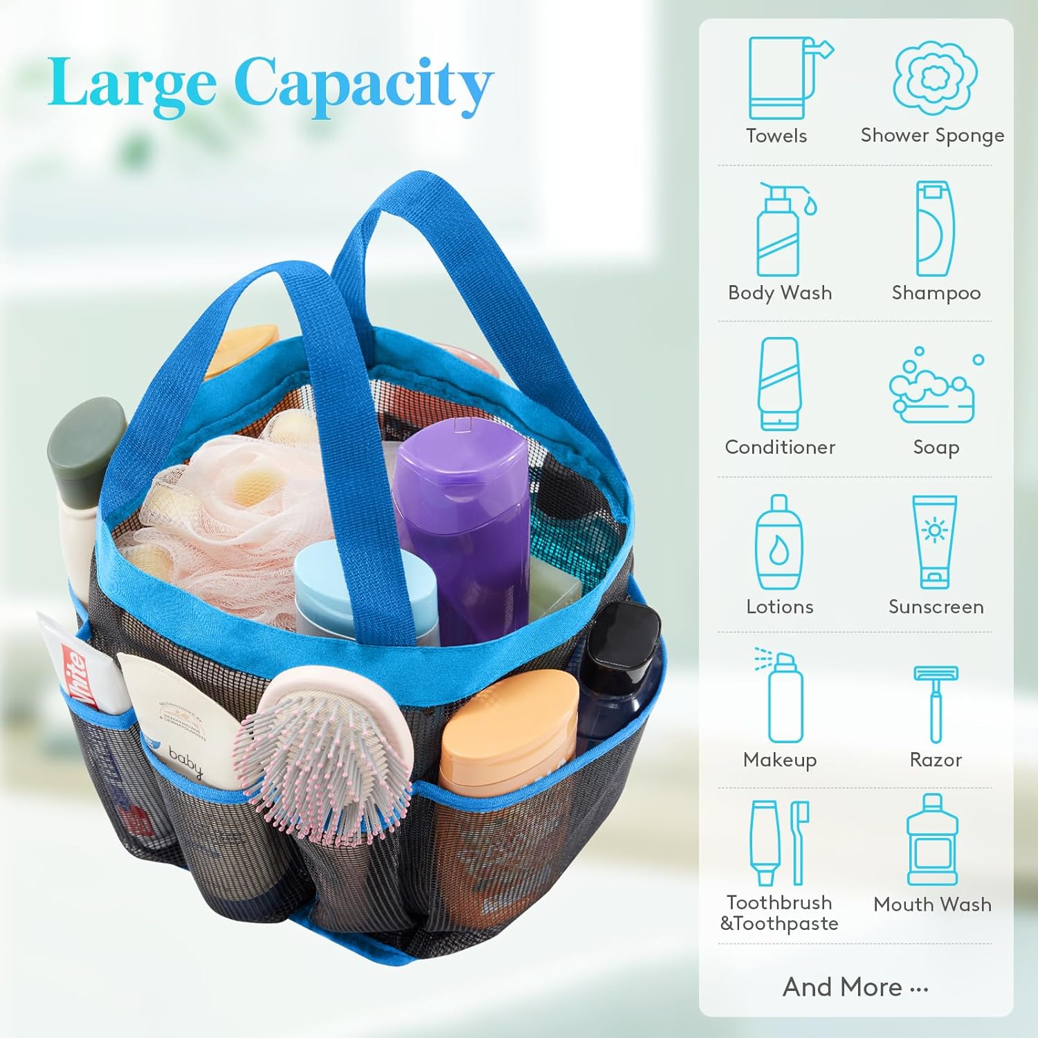 Lifewit Mesh Shower Caddy Freestanding Portable Shower Tote Bag for College Dorm, Bathroom, Gym, Travel, Quick Dry Hanging Shower Organizer with 7 Storage Pockets for Toiletry Essentials, Blue