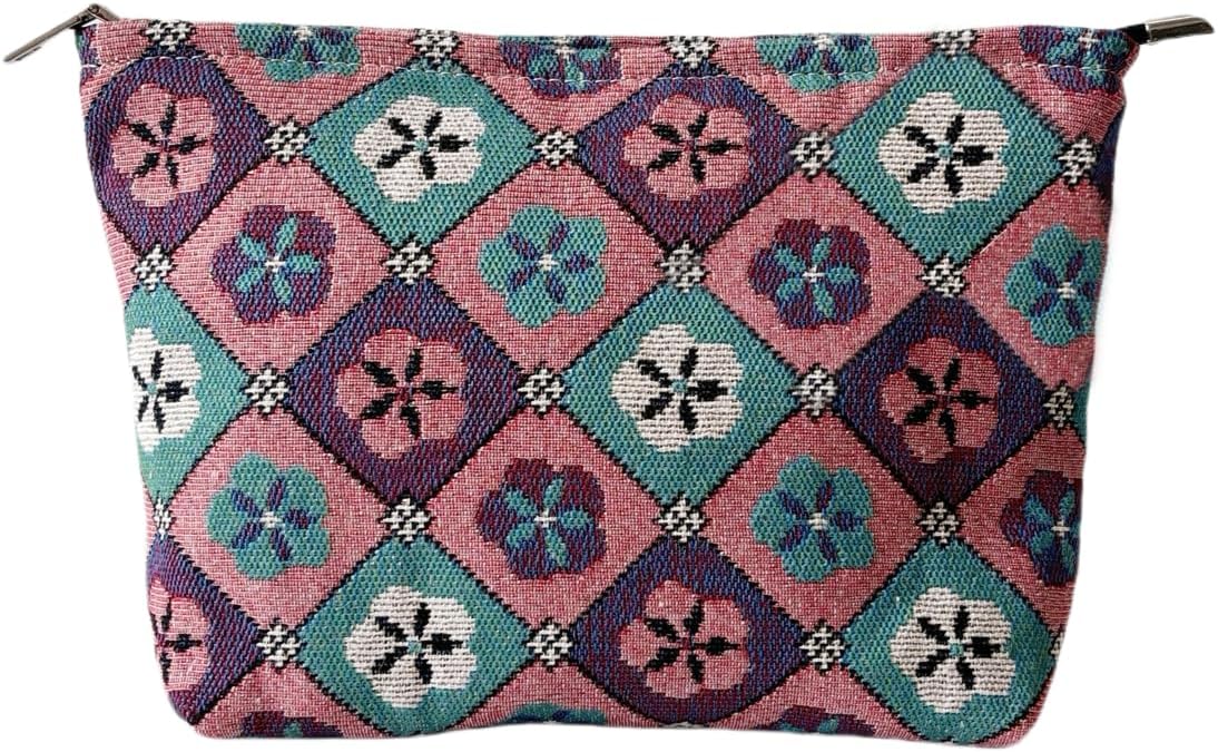 Diamond-shaped Flower Makeup Bag for Women, Canvas Cosmetic Bag with Zipper Lining, Travel Makeup Pouch for Purse, Small Pouch for Toiletry, Cosmetic, Sunscreen, Hygiene, Skincare, Medicine, Sunblock