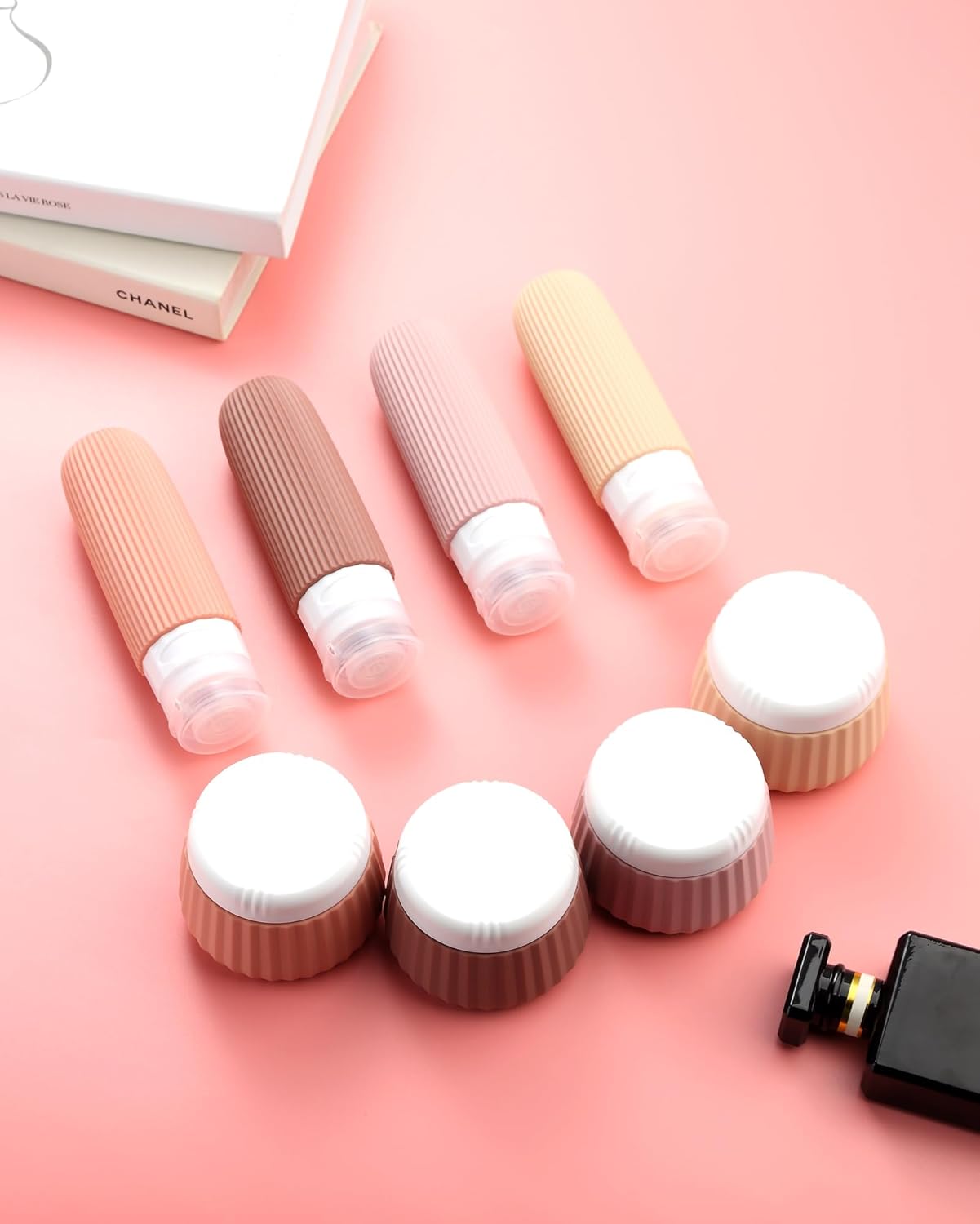 Travel Bottles 8 Pack, TSA Approved 3 oz Toiletries Containers, Leak Proof Silicone Squeezable Essentials Jars with Clear Bag