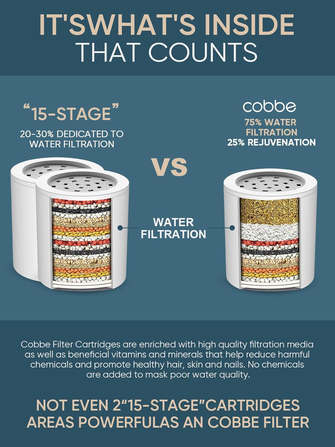 Cobbe High Output Shower Filter for Hard Water - Extra 2 Replaceable Cartridges - Removing Chlorine and Harmful Substance, and Dramatically Improves The Condition of Your Skin, Hair and Nails - Chrome