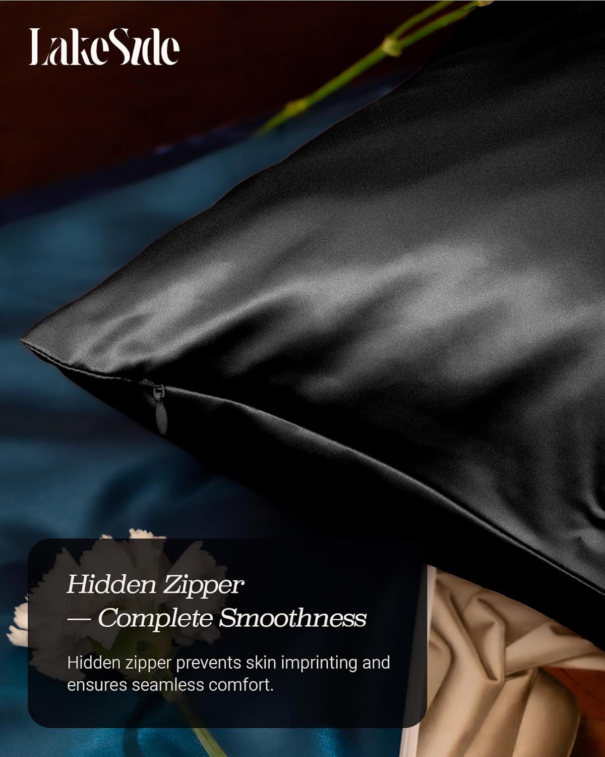 • 6A GRADE 22 MOMME SILK WITH HIDDEN ZIPPER - Premium double-sided mulberry silk with seamless hidden zipper. 22 momme density ensures durability, while the invisible closure prevents pillow shifting for all-night comfort.