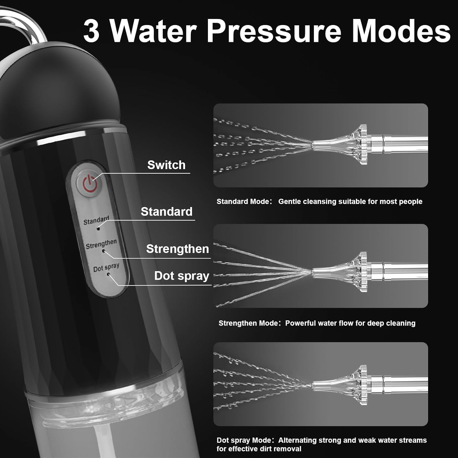 • Efficient Cleaning Modes: The ear irrigation flushing system features three cleaning modes—Standard,Strengthen, and Spot Spray,unique pulse mode generates high frequency pulses, which penetrate deep into the ear canal gently but effectively removes the most stubborn earwax, without causing any discomfort or damage to the ear canal.
