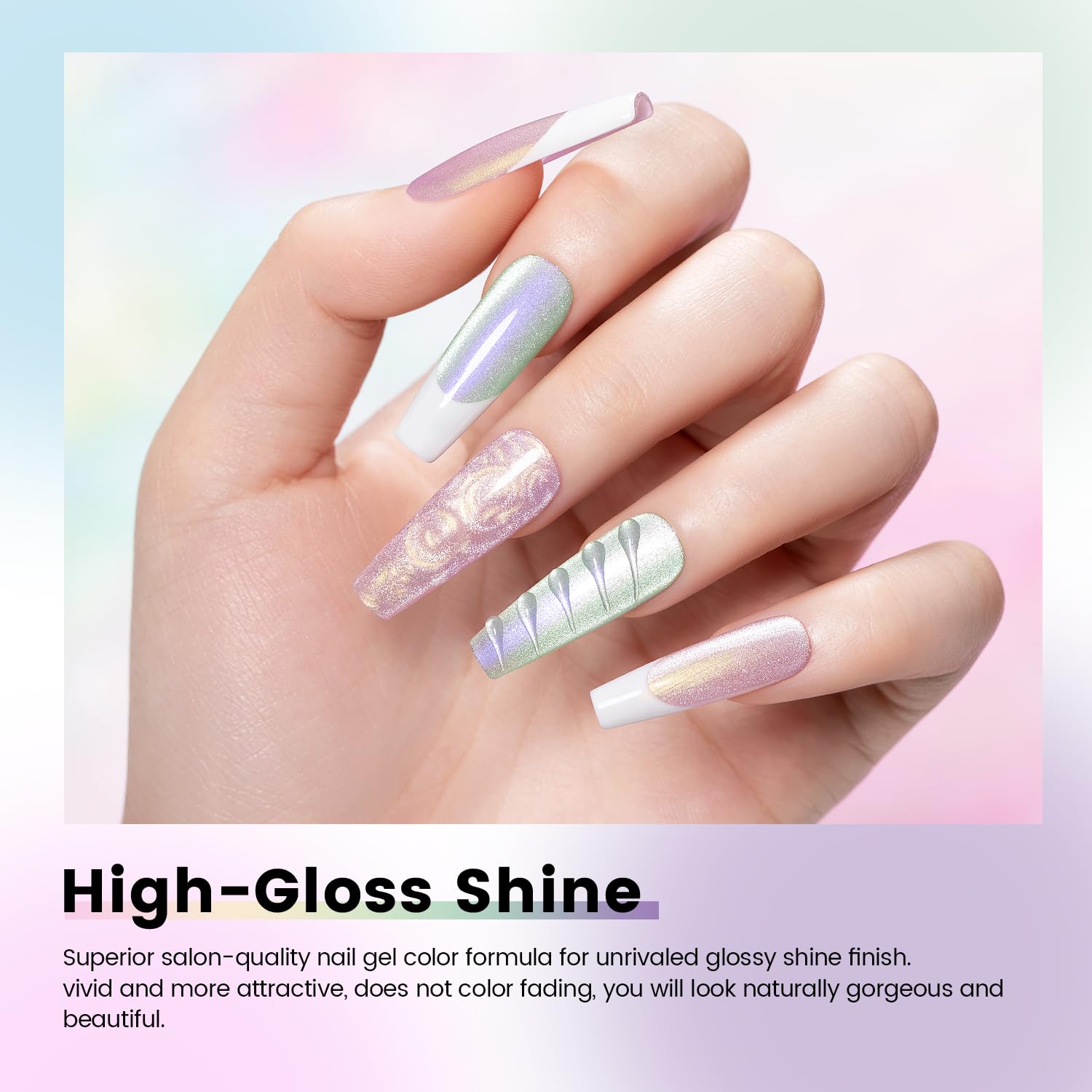 - 6PCS SILVER CATEYE GLITTER SET:This set includes beautifully curated shades like Velvet Rose,Pink,Green,Blue,Purple,and White that allow you to express your unique style for any occasion.With upgraded formula this set can bring you the bright diamond cat eye effect and swirl shell thread effect