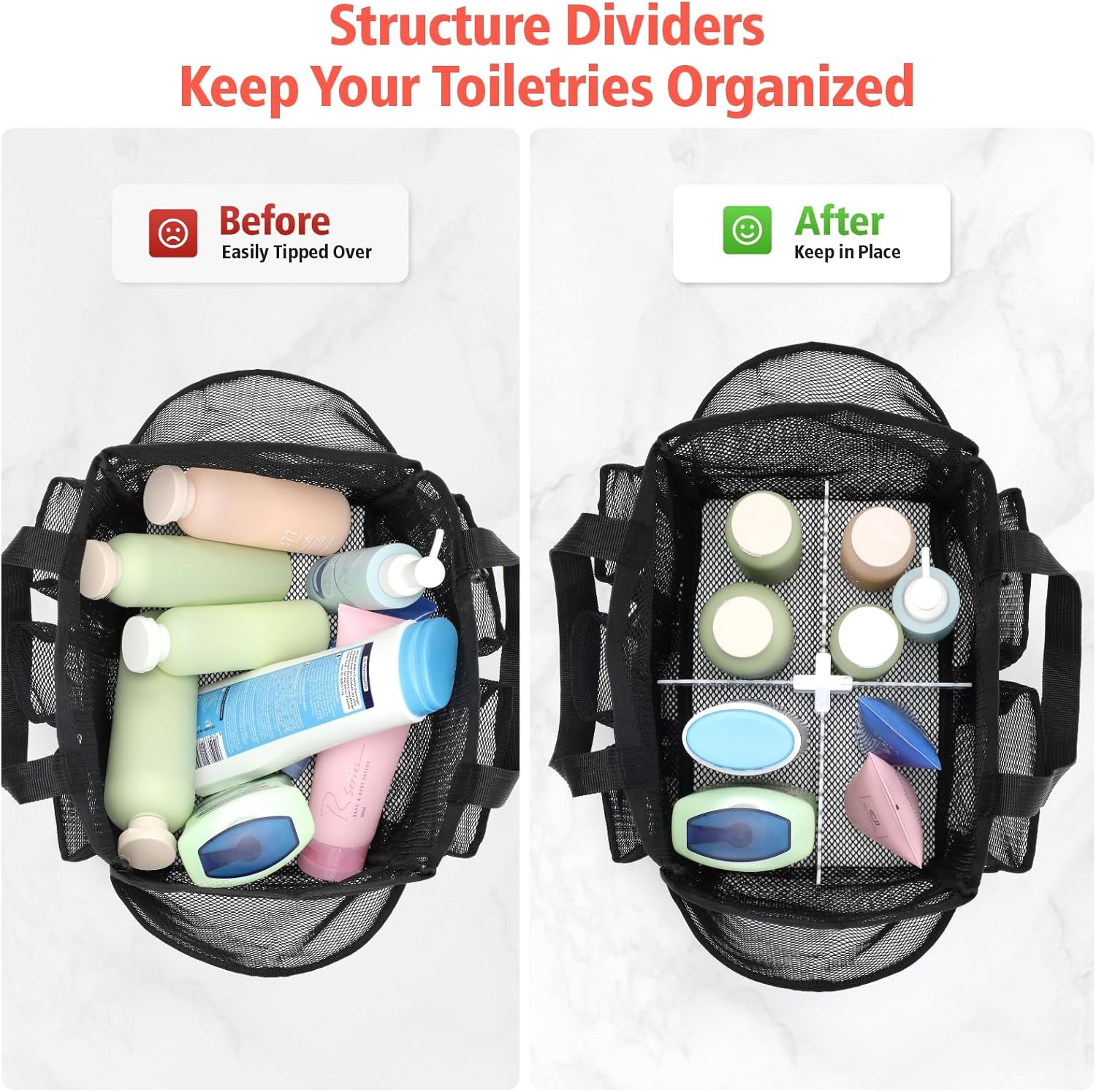 - Premium Sturdility Material, Extended Lifespan: Constructed with premium reinforced mesh polyester for exceptional sturdiness, this shower tote ensures sturdility. The quick-dry mesh feature keeps your toiletries dry and clean at all times, extending its lifespan