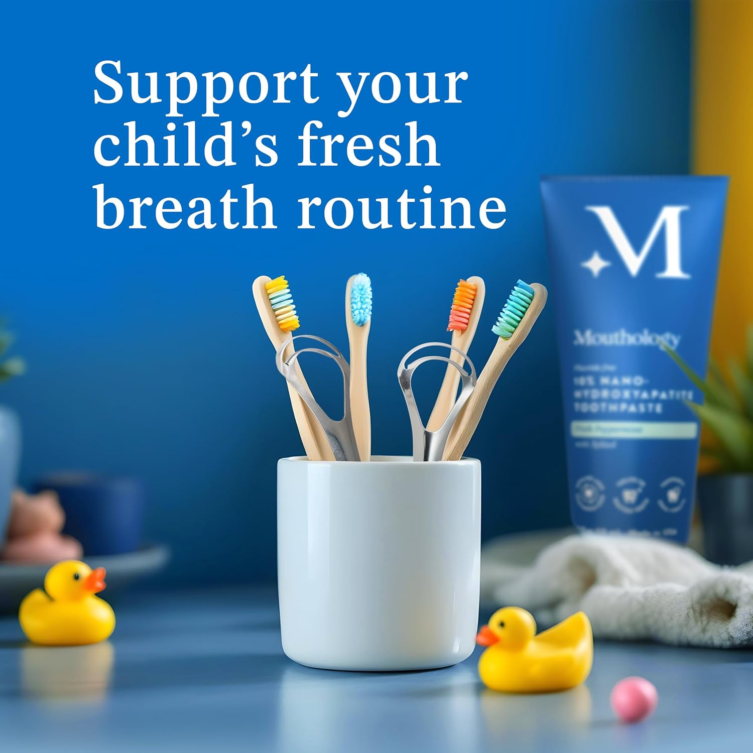 Mouthology Tongue Scraper for Kids (2 Pack), Stainless Steel Tongue Cleaner (Reduce Bad Breath), Metal Tongue Scrubber for Children, Improve Oral Health