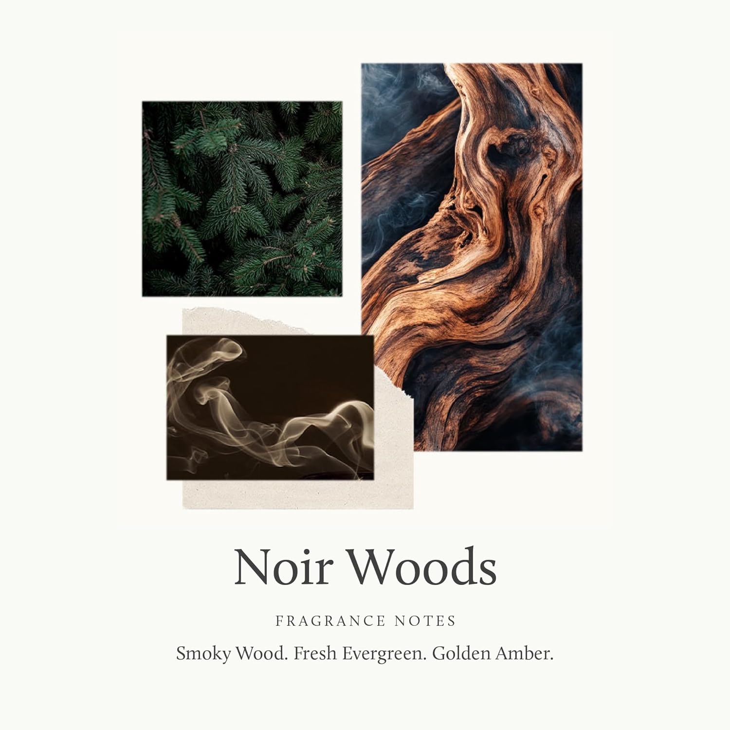 - Alluring Noir Woods Scented Room Spray - Smoky wood and fresh evergreen blend with golden amber to create a refined fragrance that invites moments of stillness, connection, and inspiration. A scent that sets the tone, this air freshener turns an ordinary time into something intentional—no flame required.