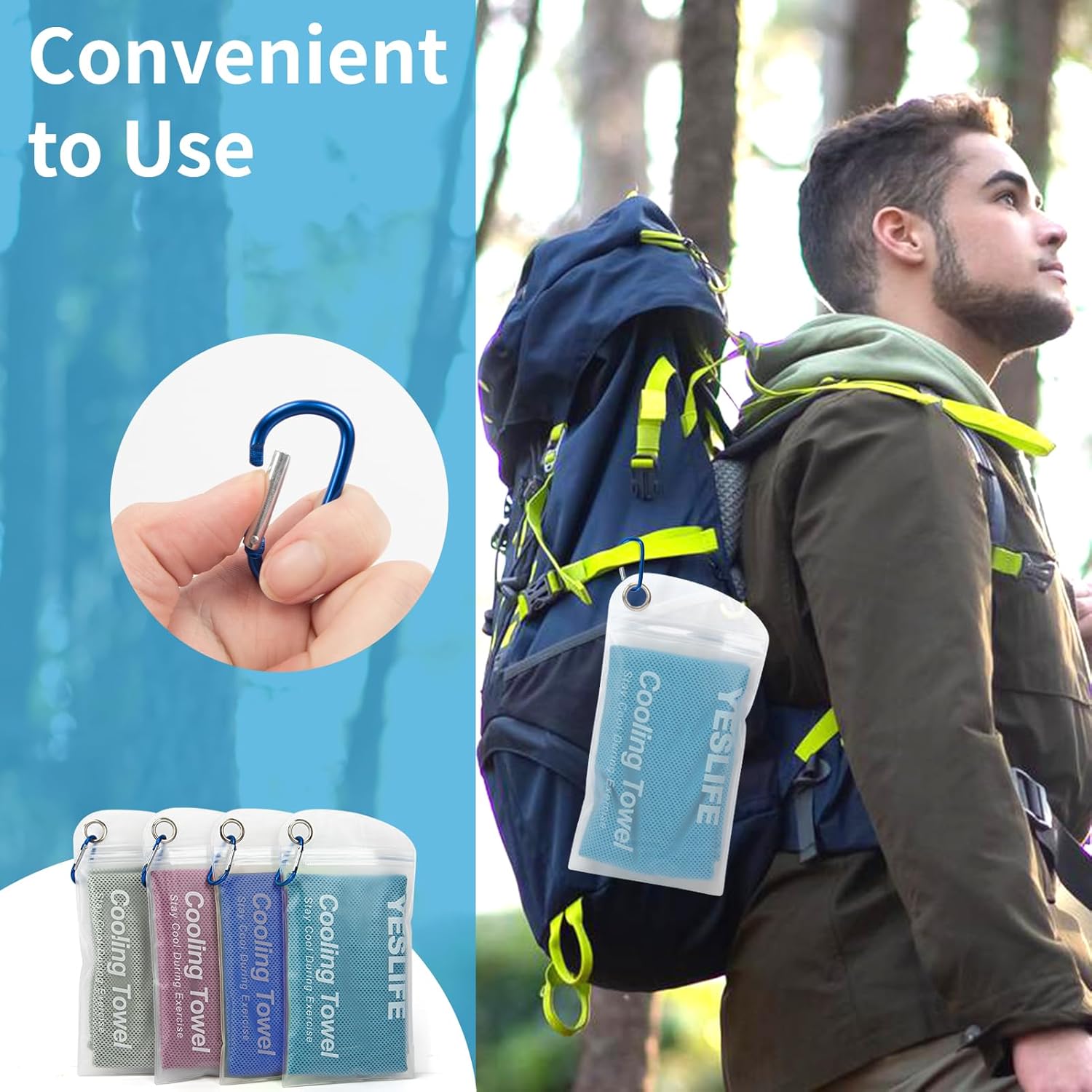 YESLIFE 4 Pack Cooling Towel 40"x12", Gym Towels for Men and Women, Soft Breathable Workout Towels for Yoga, Running, Sport, & More (Grey, Dark Blue, Purple, Blue)