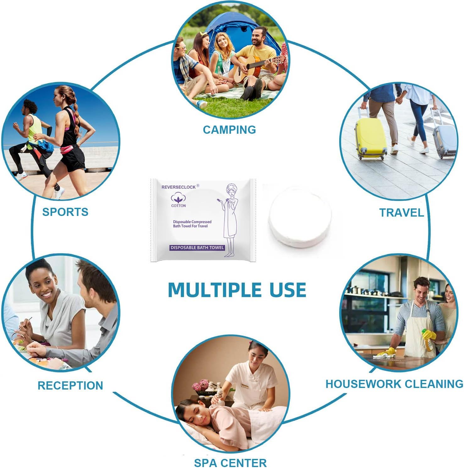 - Widely Use: Our compressed towels are suitable for travel, camping, swimming, bathrooms, offices, business trips, beaches, hotels, gyms, spas, and anywhere you can think of. It’s convenient & clean enough to use when you need to towel and protect you.