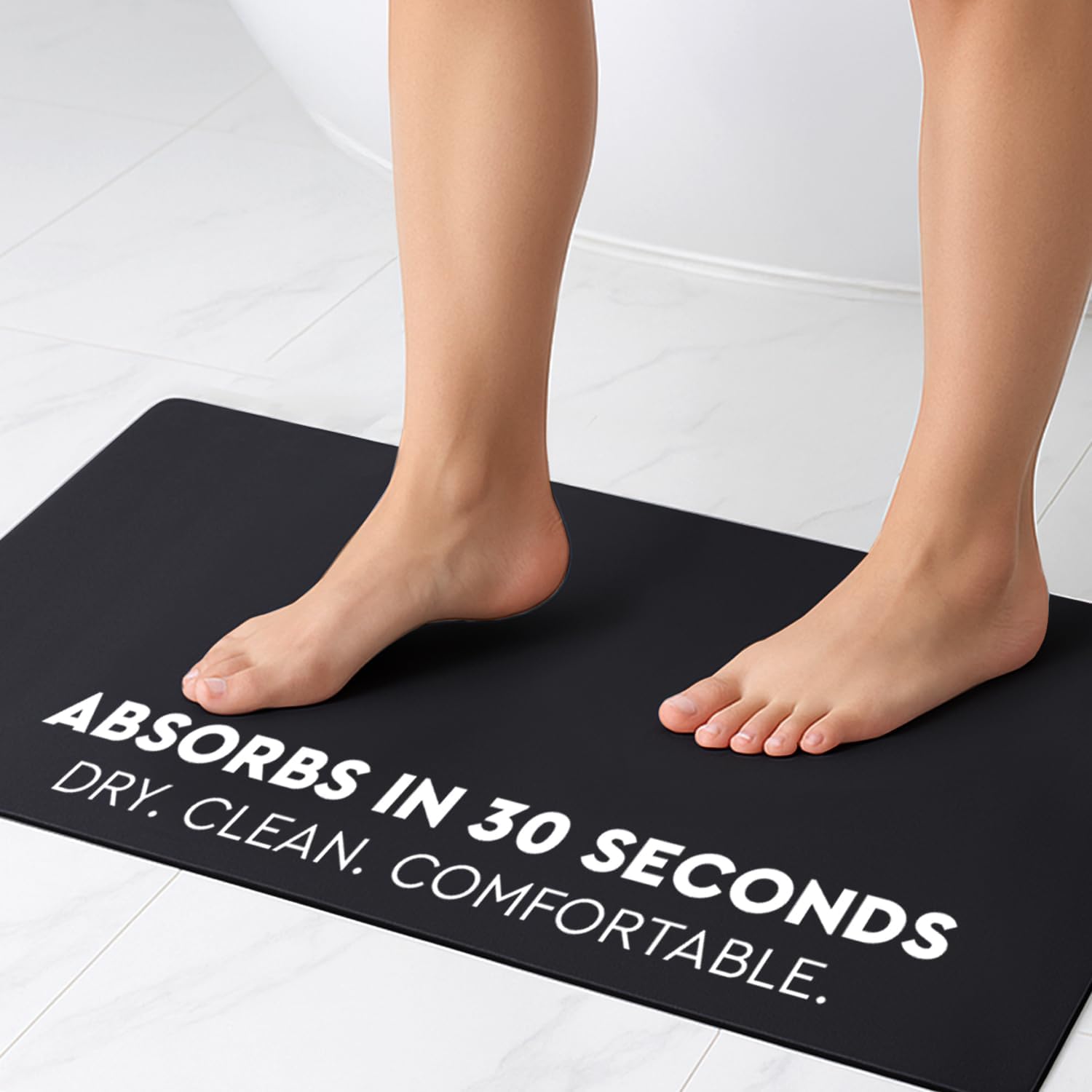 Homergy Bath Mat – Super‑Absorbent & Quick‑Dry with Non‑Slip Rubber Backing, Machine Washable & Odor Resistant – 18x28 in, Black