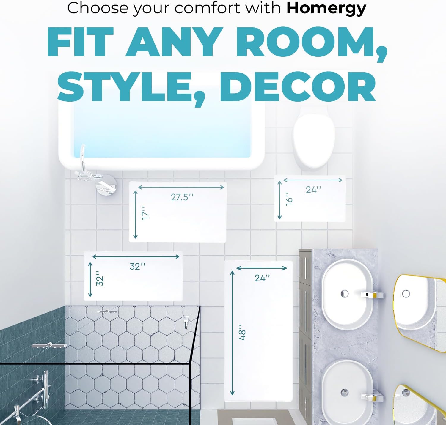 Homergy Bath Mat – Super‑Absorbent & Quick‑Dry with Non‑Slip Rubber Backing, Machine Washable & Odor Resistant – 18x28 in, White