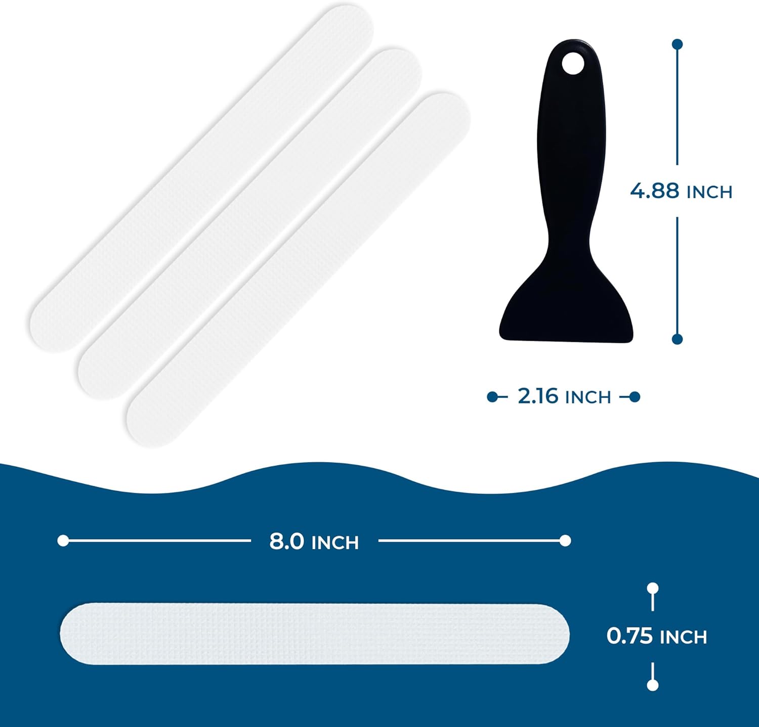 - Versatile & Comprehensive Coverage - With 24 white strips (0.75”x8”) included in each package, you can cover most of your bathtub or shower surface, drastically reducing the risk of slips. Additionally, these versatile strips are perfect for use on stairs and boats, providing extra safety wherever needed