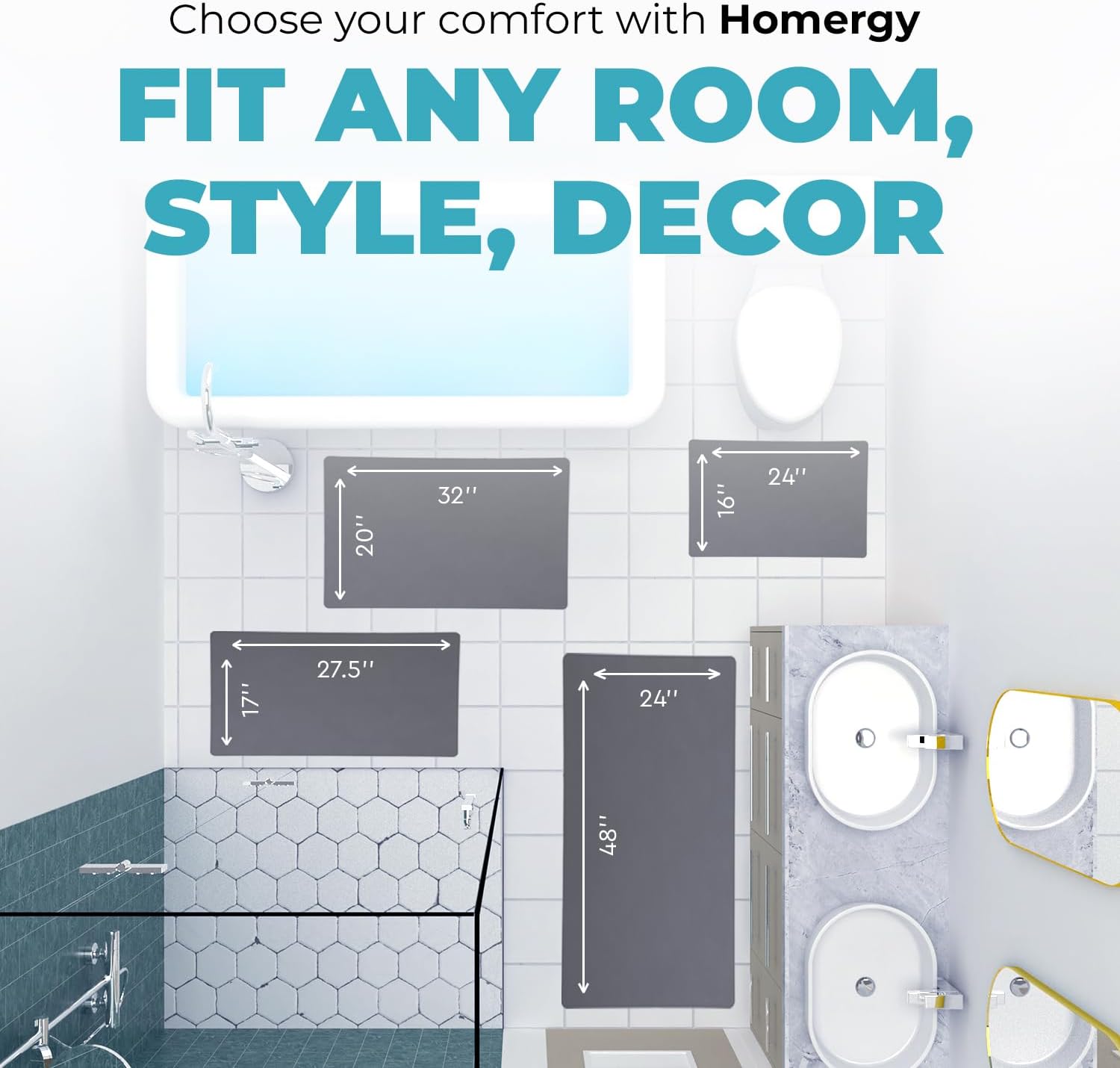 Homergy Bath Mat – Super‑Absorbent & Quick‑Dry with Non‑Slip Rubber Backing, Machine Washable & Odor Resistant – 16×24 in, Dark Gray