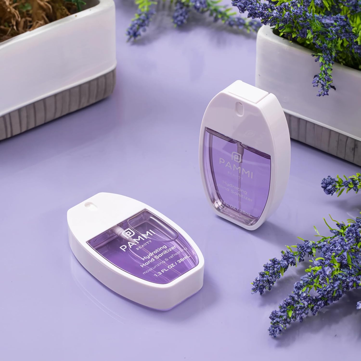 PAMMI Power Mist Hydrating Hand Sanitizer Spray, Portable Travel Size Pocket Hand Sanitizer, Scented Handsanitizer Mini Spray For Car - 600 Sprays (2 Pack (Peach, Lavender))
