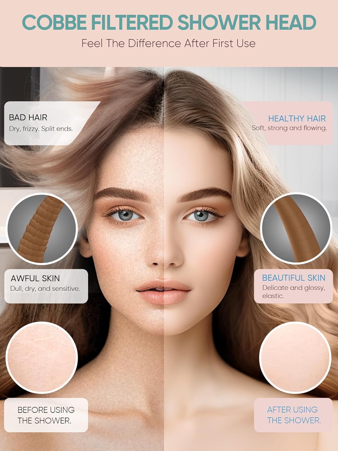 - Cobbe - Experts in Shower Filtration Solutions: With over 18 years of expertise in bathroom filtration technology, Cobbe is one of the top-selling filtered showerheads on Amazon. Designed specifically to optimize water quality in the U.S., Cobbe features an advanced 20-stage filtration system that effectively removes impurities while maintaining strong water pressure.