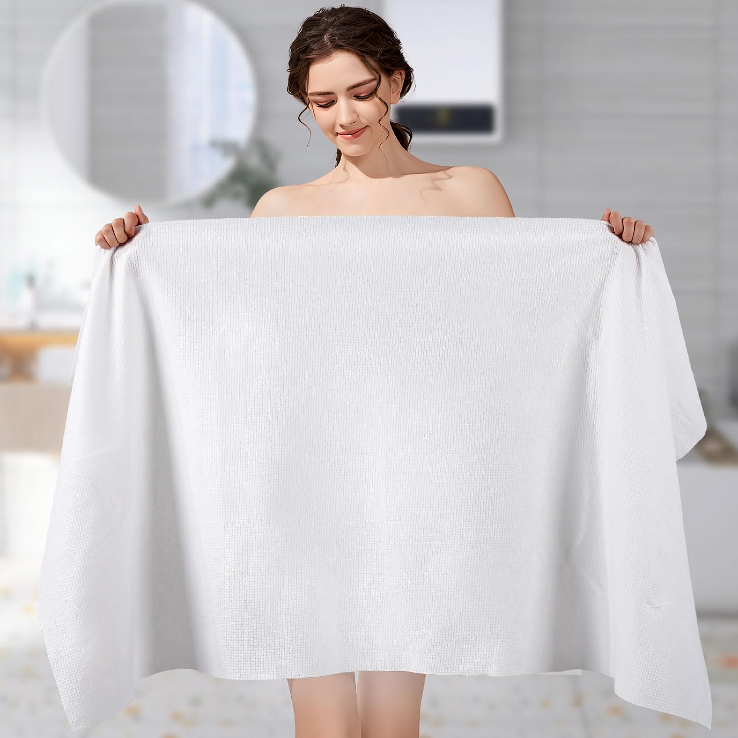 - Generous Size: Measuring 27.5 x 55 inches, our large disposable shower towels provide ample coverage for drying and wrapping your body after a bath