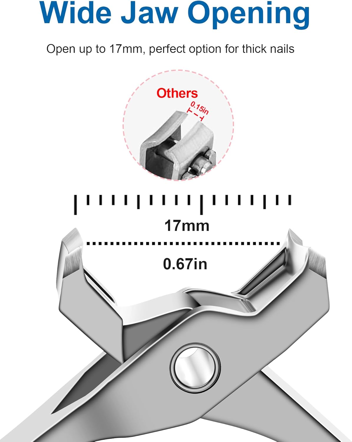 - Effortlessly Trim Thick Nails: The thick toenail clipper features a 17mm wide-open jaw and a razor-sharp cutting edge, specifically designed to tackle thick nails; With its powerful cutting ability, perfect for seniors and individuals with thicker nails