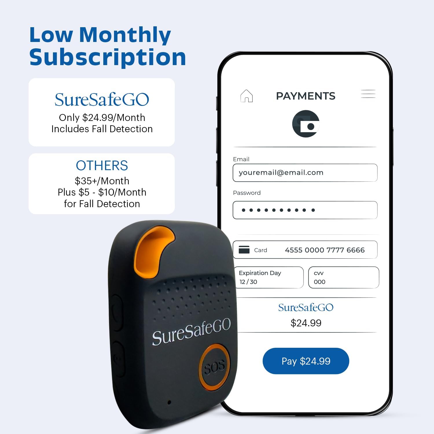 - AFFORDABLE CONNECTIVITY: For just $24.99 per month (billed quarterly), our emergency alert system offers emergency calls and data with the included SIM card. With reliable AT&T 4G connectivity, stay connected when it matters most