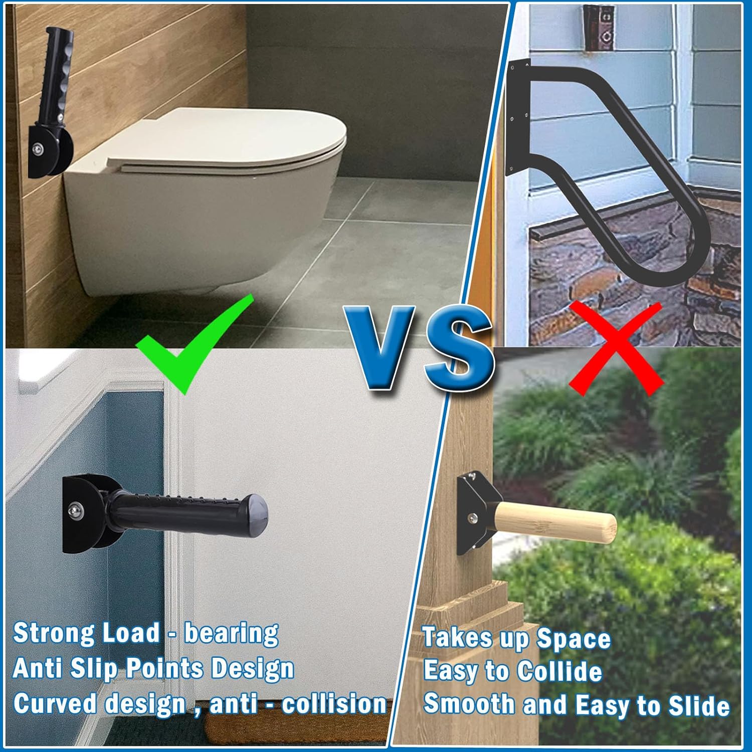 - 【Upgraded Silicone Handrails】We upgraded the elderly flip-up grab bar with a non-slip soft silicone grip, which fits five fingers perfectly. The adopts a dotted non-slip and elevated tail design to increase friction and prevent slipping. It also maintains adequate traction in wet conditions