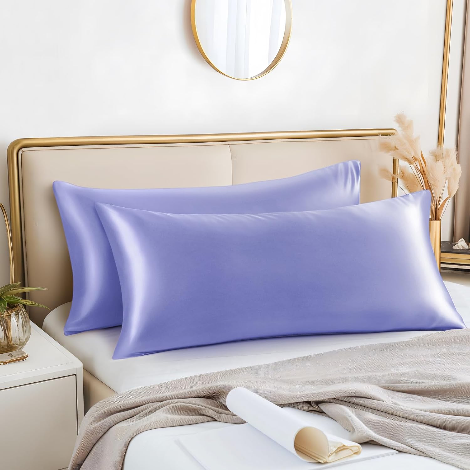 BEDELITE Satin Body Pillow Cover 2 Pack, Super Soft and Cooling Body Pillow Pillowcase for Hair and Skin, Breathable Silky Full Long Pillowcase Cover(20"x54", Lilac)