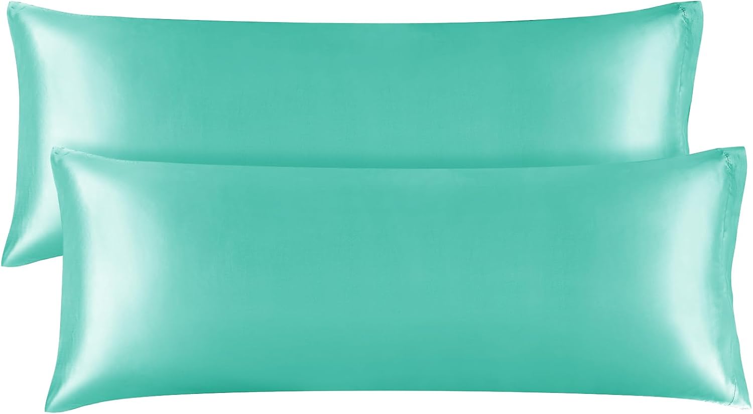 BEDELITE Satin Body Pillow Cover 2 Pack, Super Soft and Cooling Body Pillow Pillowcase for Hair and Skin, Breathable Silky Full Long Pillowcase Cover(20"x54", Turquoise)