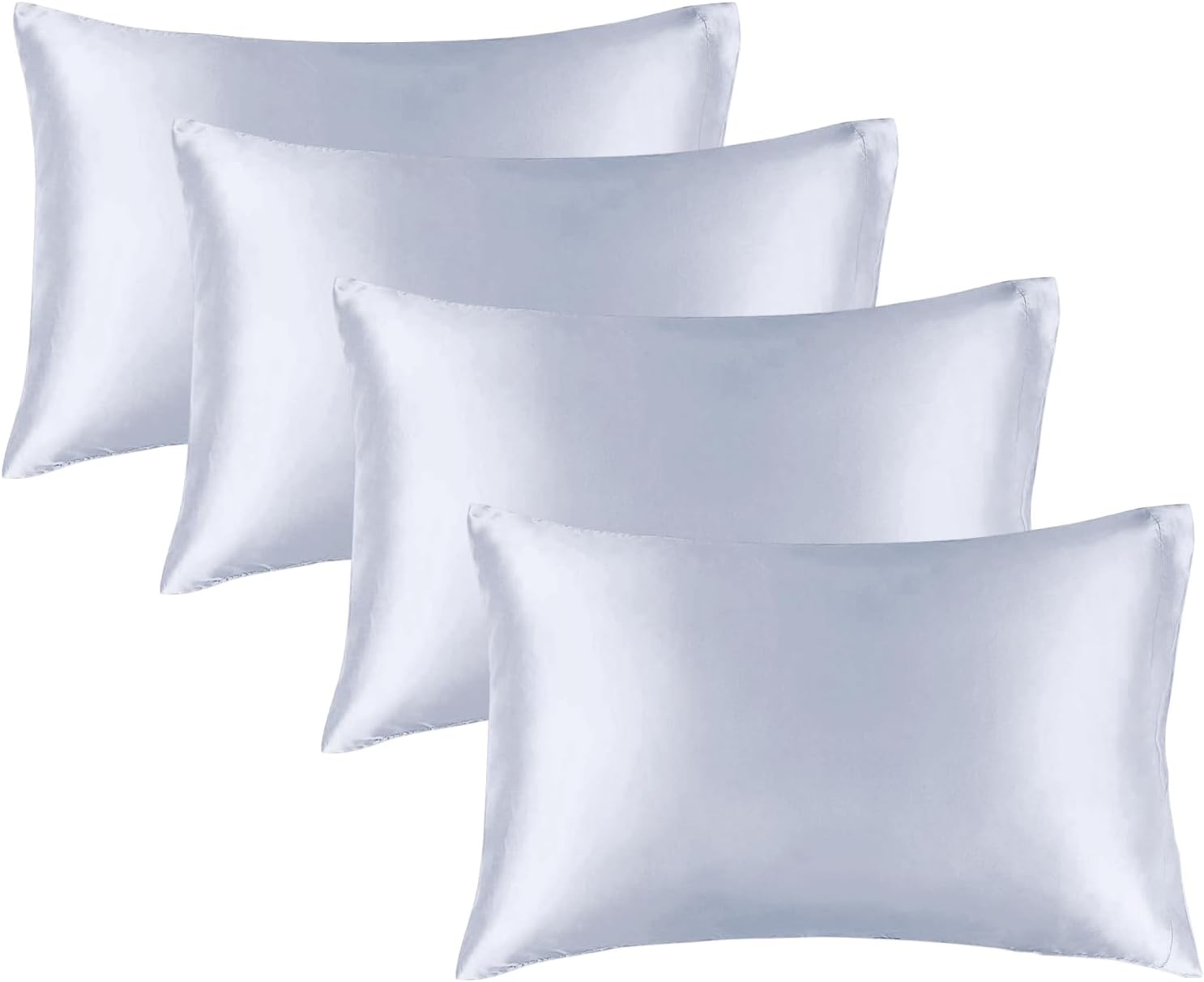 BEDELITE Satin Pillowcase for Hair and Skin, Super Soft Similar to Silk Pillow Cases 4 Pack with Envelope Closure, Cooling Pillowcases for Women Men (20"x26" Standard Size, Evening Haze)