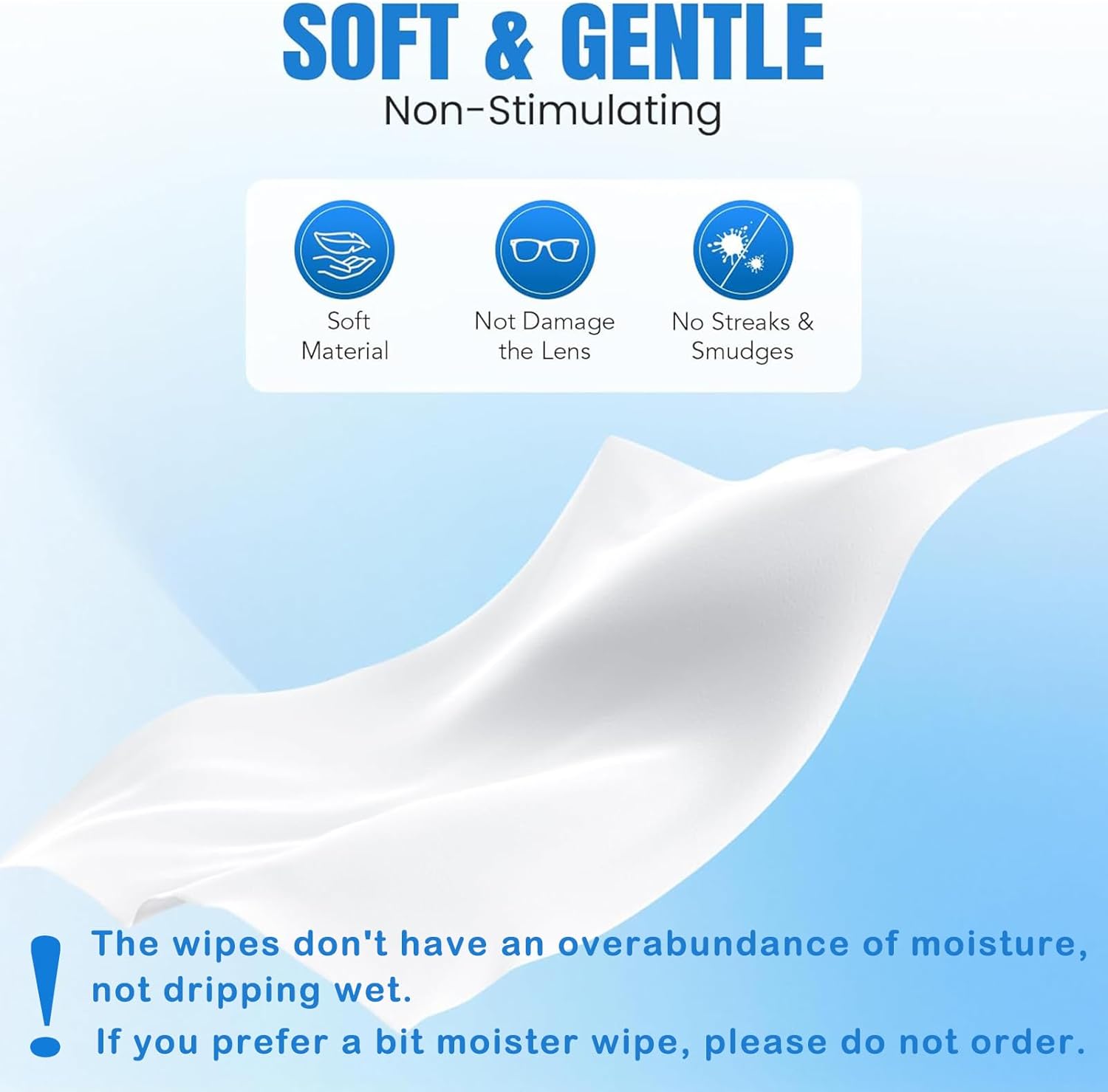 - 【Gentle and Safe】The lens cleaner wipes are made of soft and lightweight material, gentle, effective and safe to use. Each wipe is pre-moistened ensure quick cleaning without leaving any scratch or streak. The eyeglass wipes is qucikly dry design. After unpacking the warp,please use the lens wipes in time inavoid moisture evaporation.