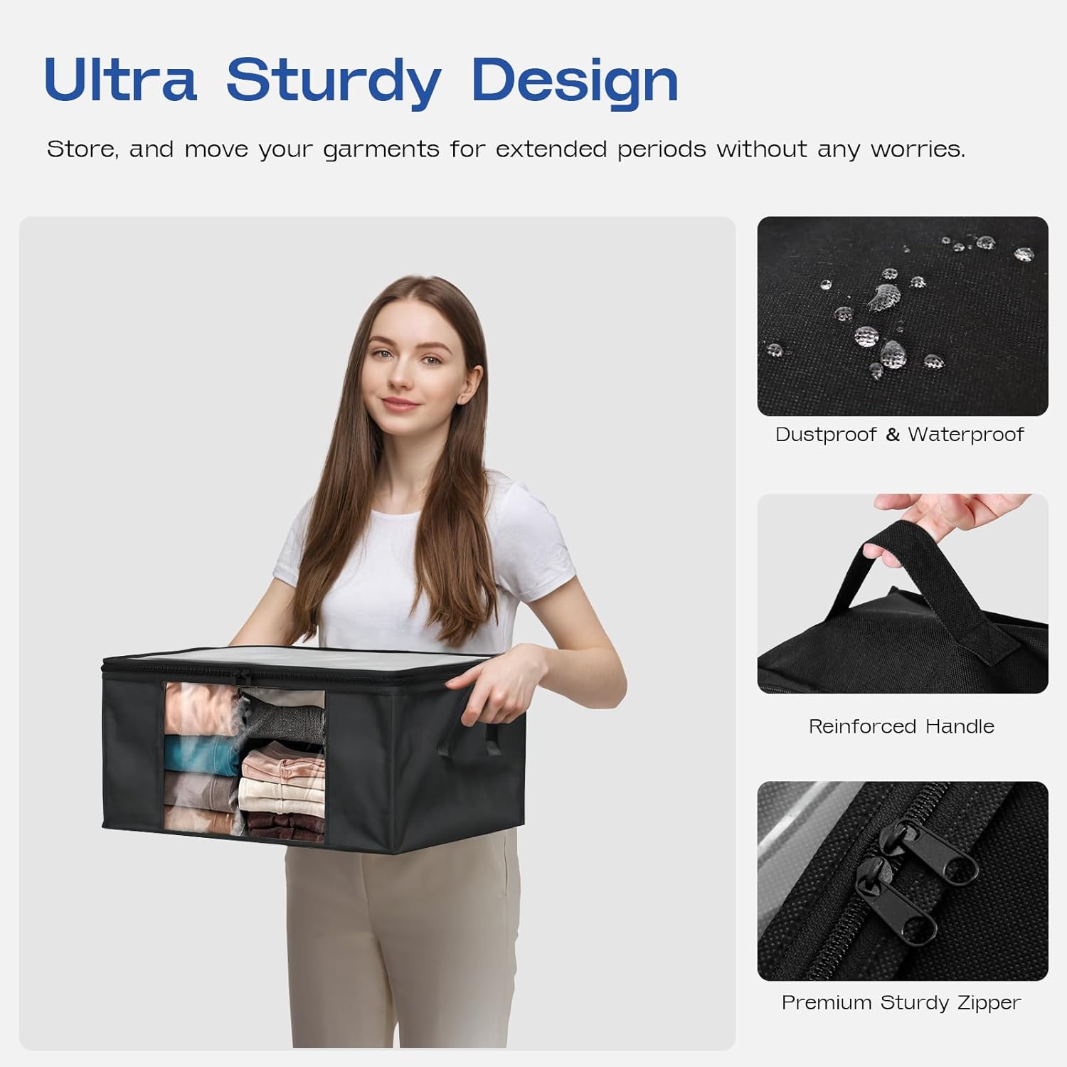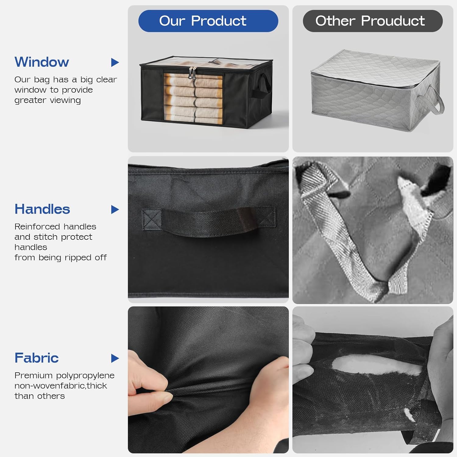 - 【Sturdy Zipper & Clear Window】Sturdy zipper ensures durability, the two-way zipper slides easily along the closure when in use, and the clear window on the front allows you to quickly find and distinguish your blankets, clothes, quilts, towels, pillows, shoes, books and toys.
