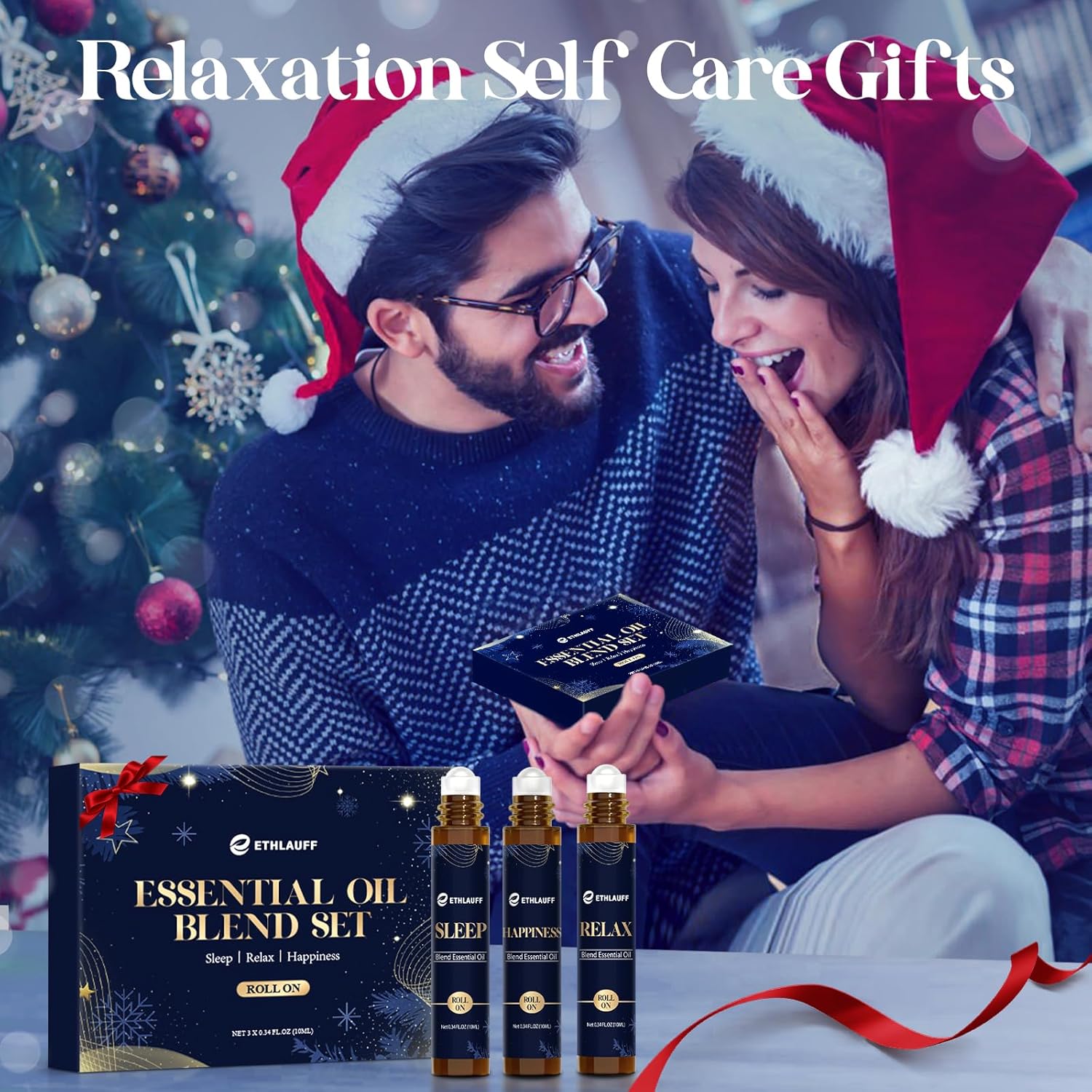 Essential Oil Roller Set, (Sleep, Relax, Happiness) Aromatherapy Roll On for Body Skin Care, Home - Natural Aromatherapy Gift, Relaxtion Gift, Stress Relief Gift for Women and Men