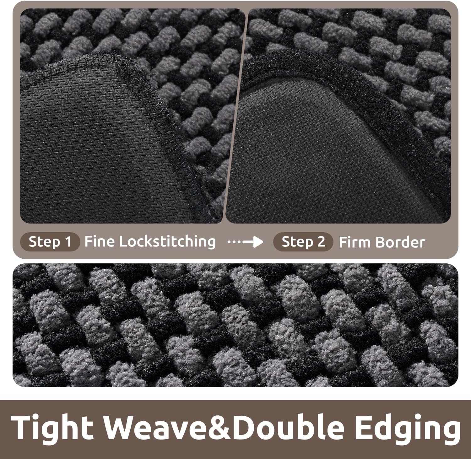 - [Update Double Edge & Color] Tightly woven bathroom runner with double locking edge process makes bathroom runner rug more stable, not easily dispersed, more robust than most of others chenile bathroom rugs. Stylish two-color design versatile, light and cozy chenille bathmat makes your feet feel cozy and relaxed.