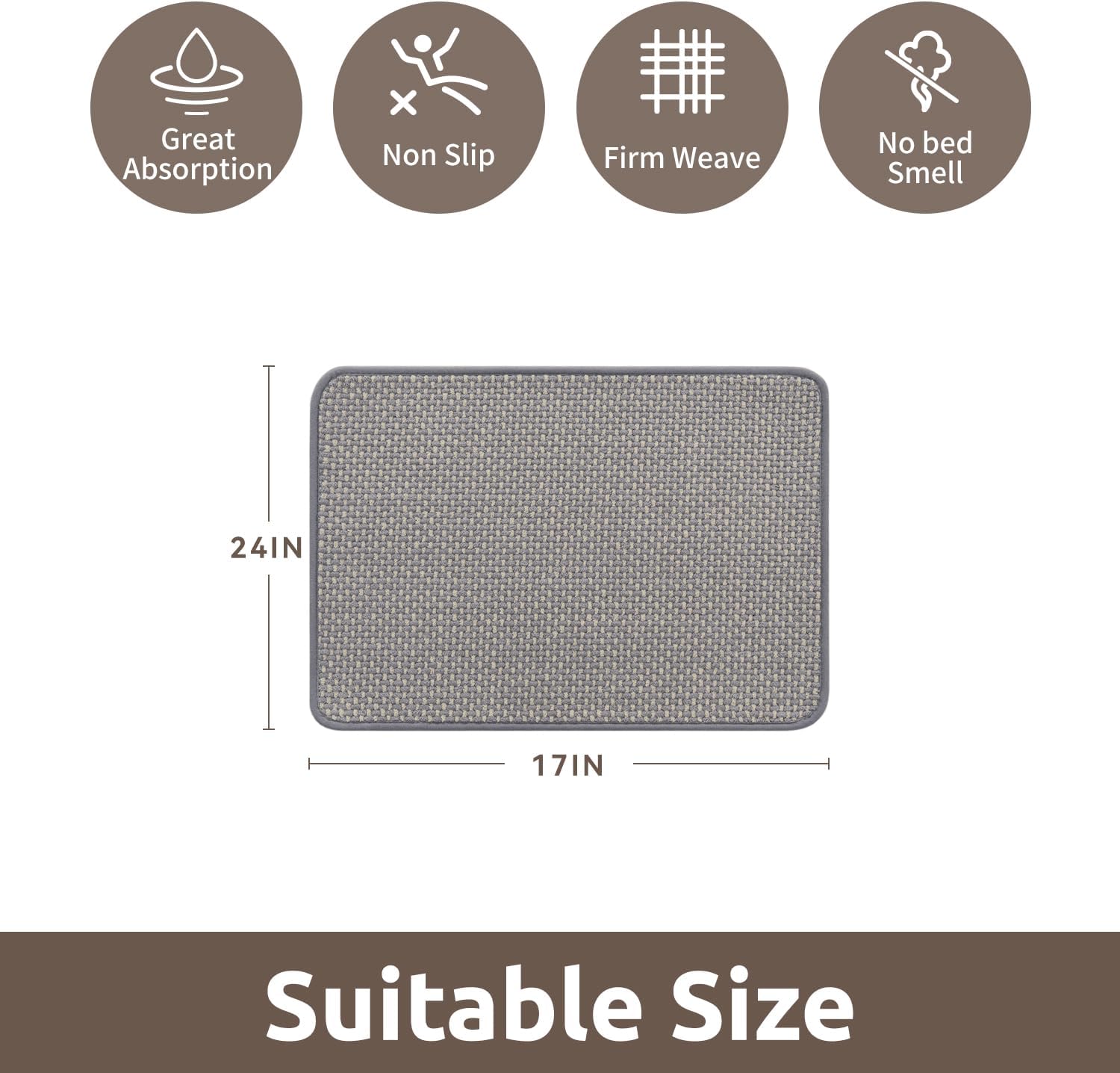 - [Super Absorbency] Tightly woven non slip bath mat with premium material quickly absorbs water keep floors dry and clean. Breathable structure makes dry quickly. Ideal bathroom floor mat for daily use, it helps maintain a clean, comfortable, and slip-free environment.