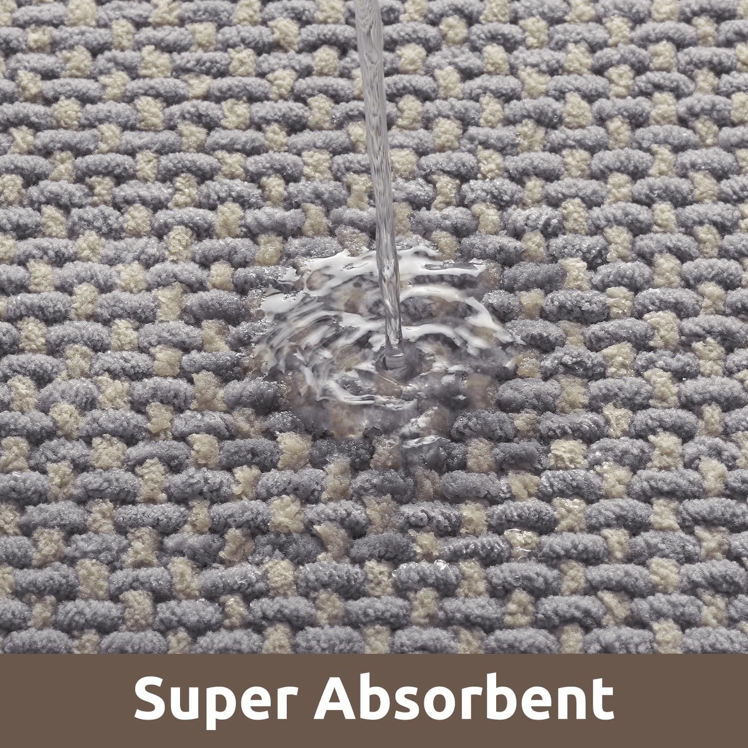 AMOAMI Chenille Bath Mat Super Absorbent Bathroom Mat Quick Dry Bath Mats for Bathroom Rubber Backed Bathroom Rugs Non Slip Washable Fit Under Door, Front of Bathtub, Sink, LIGHTGREY&Beige 17"x24"