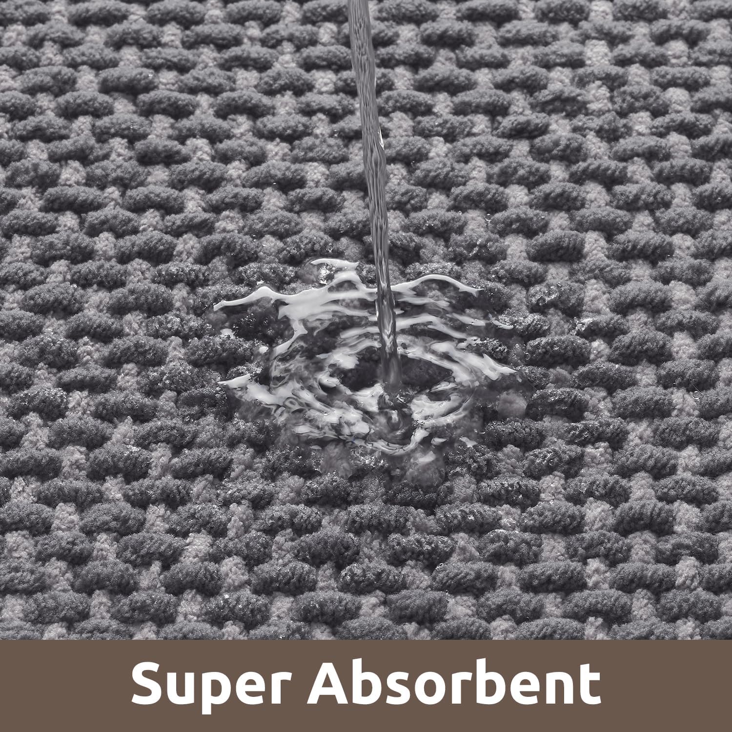 - [Non-Slip Backing] Rubber backed absorbent bath mat stays firmly in place and will not slip, thus reducing the risk of falling, especially suitable for the elderly and children. Chenille bath mat runner also prevents water from leaking onto the floor, keeping bath rug clean and dry.