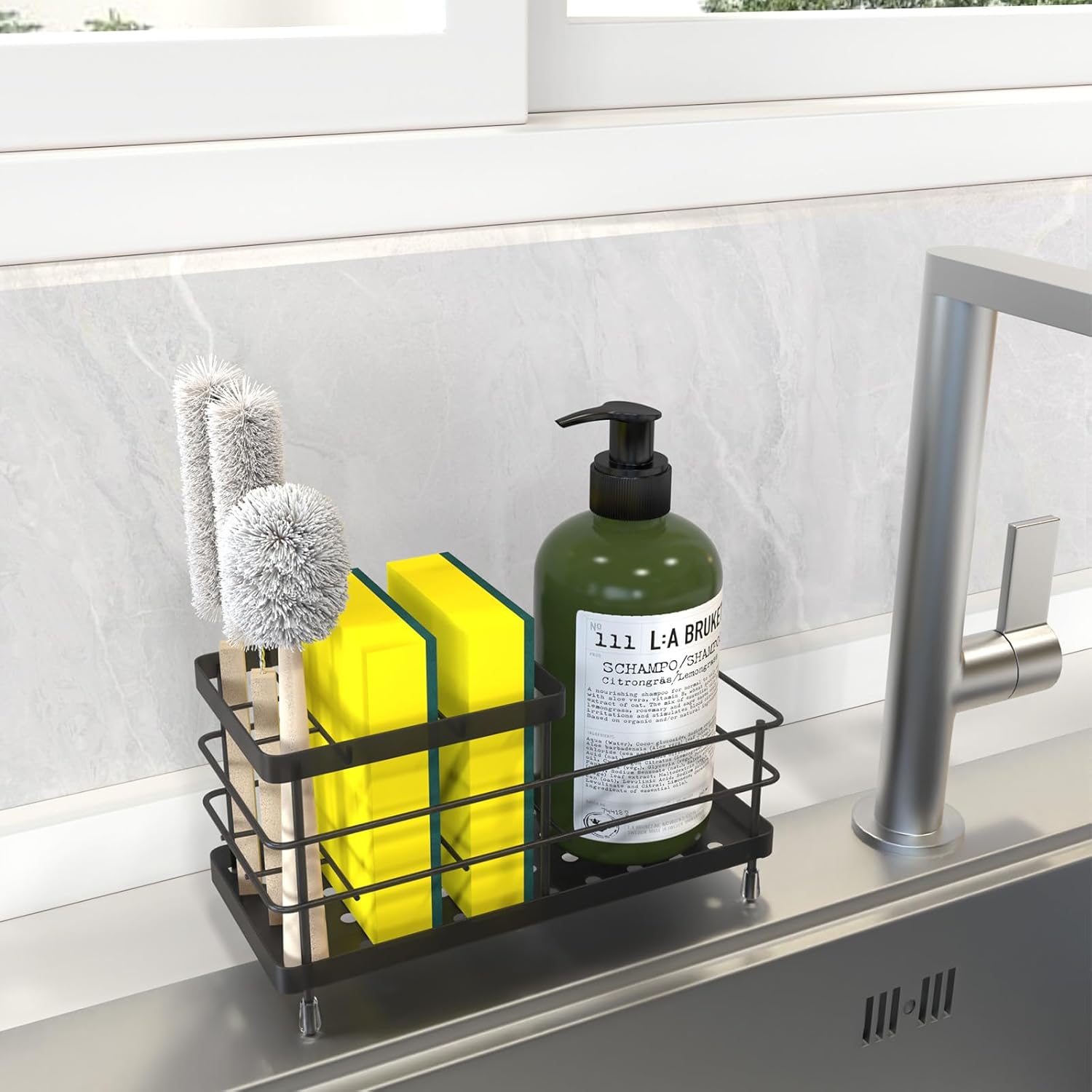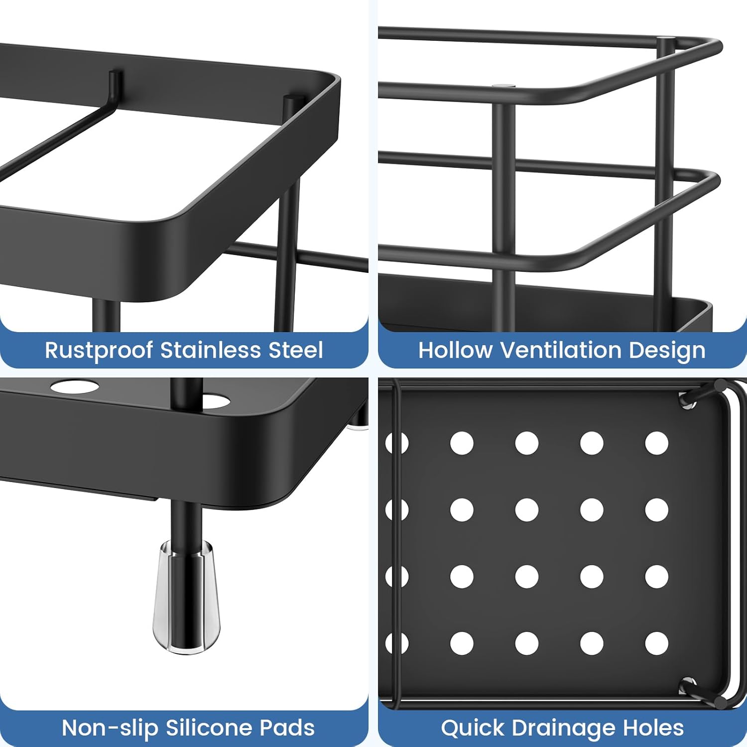 Luxspire Toothbrush Holders, 6 Slots Stainless Steel Tooth Brush Holder with Drainage, Toothbrush Holder for Bathroom Countertop & Kitchen Sink, Bathroom Accessories, Black