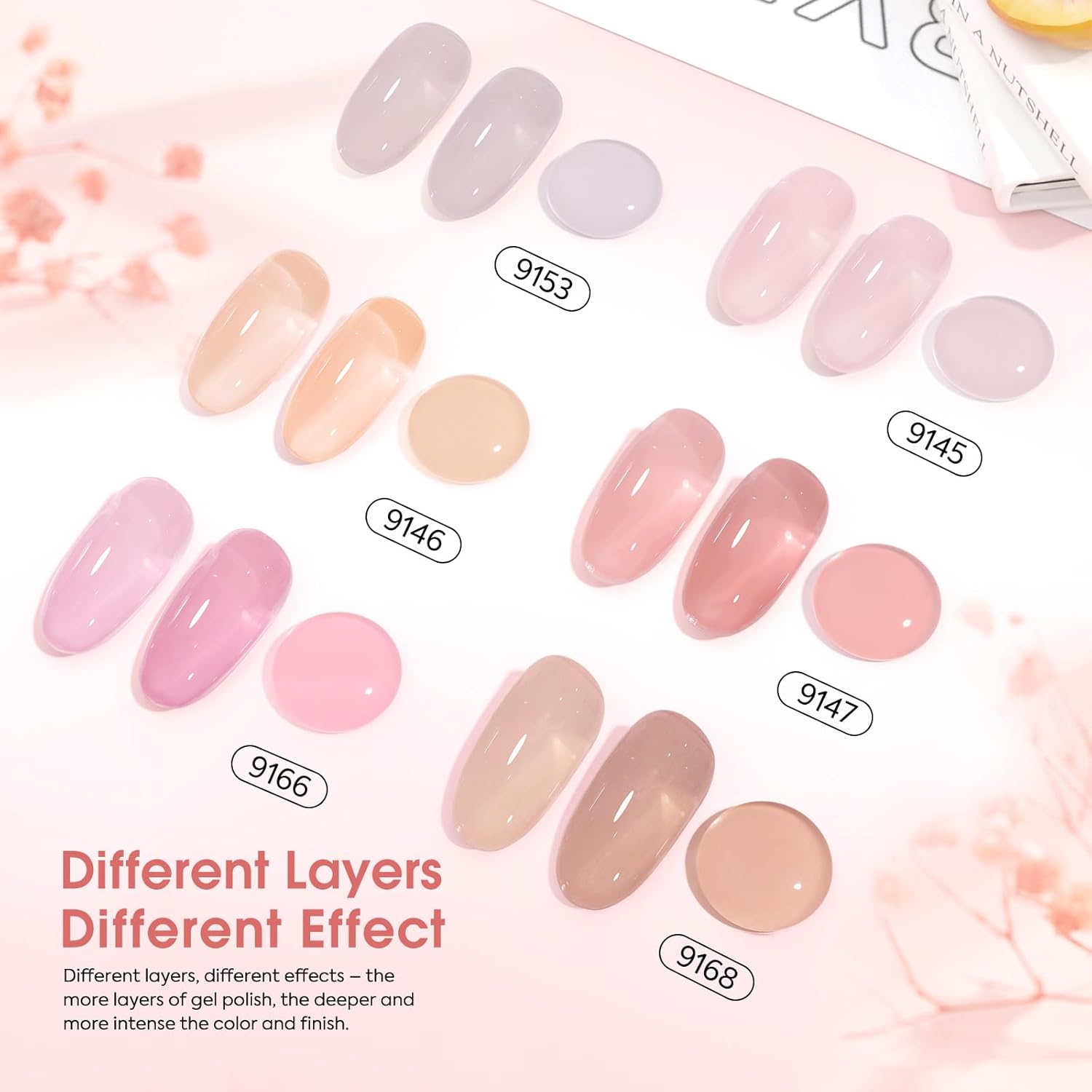 CANNI 6 Colors 9 Ml Jelly Nude Pink Gel Nail Polish Set- Neutral Transparent Pink Colors Sheer Gel Polish Kit, Soak Off LED Nail Gel Manicure Kit DIY at Home Salon Gifts