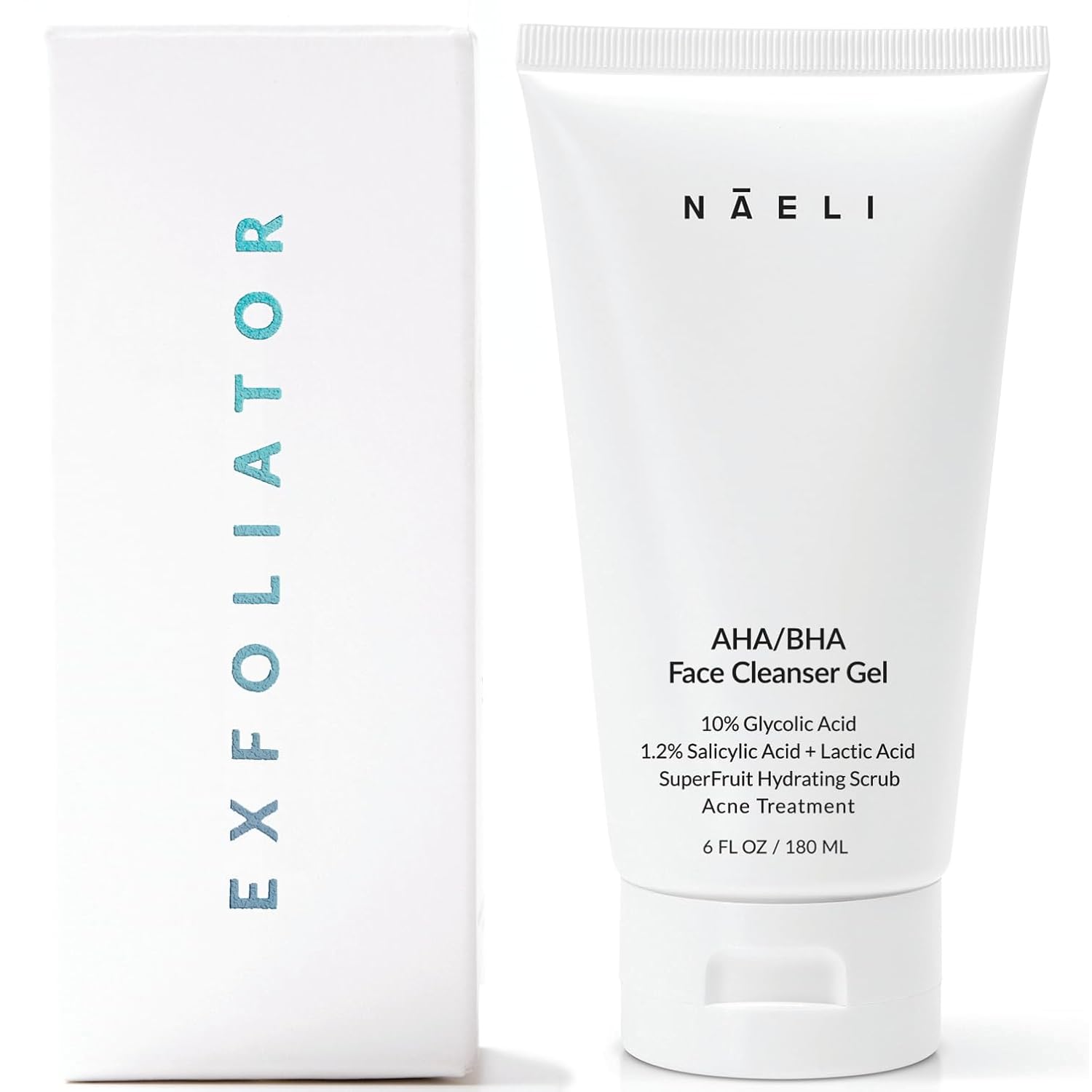 NAELI AHA/BHA Exfoliating Face Wash - 10% Glycolic Acid & Salicylic Acid Cleanser, Anti Aging Acne & Wrinkle Reducing Facial Exfoliant, Pore Minimizer & Brightening Gel, 6 oz