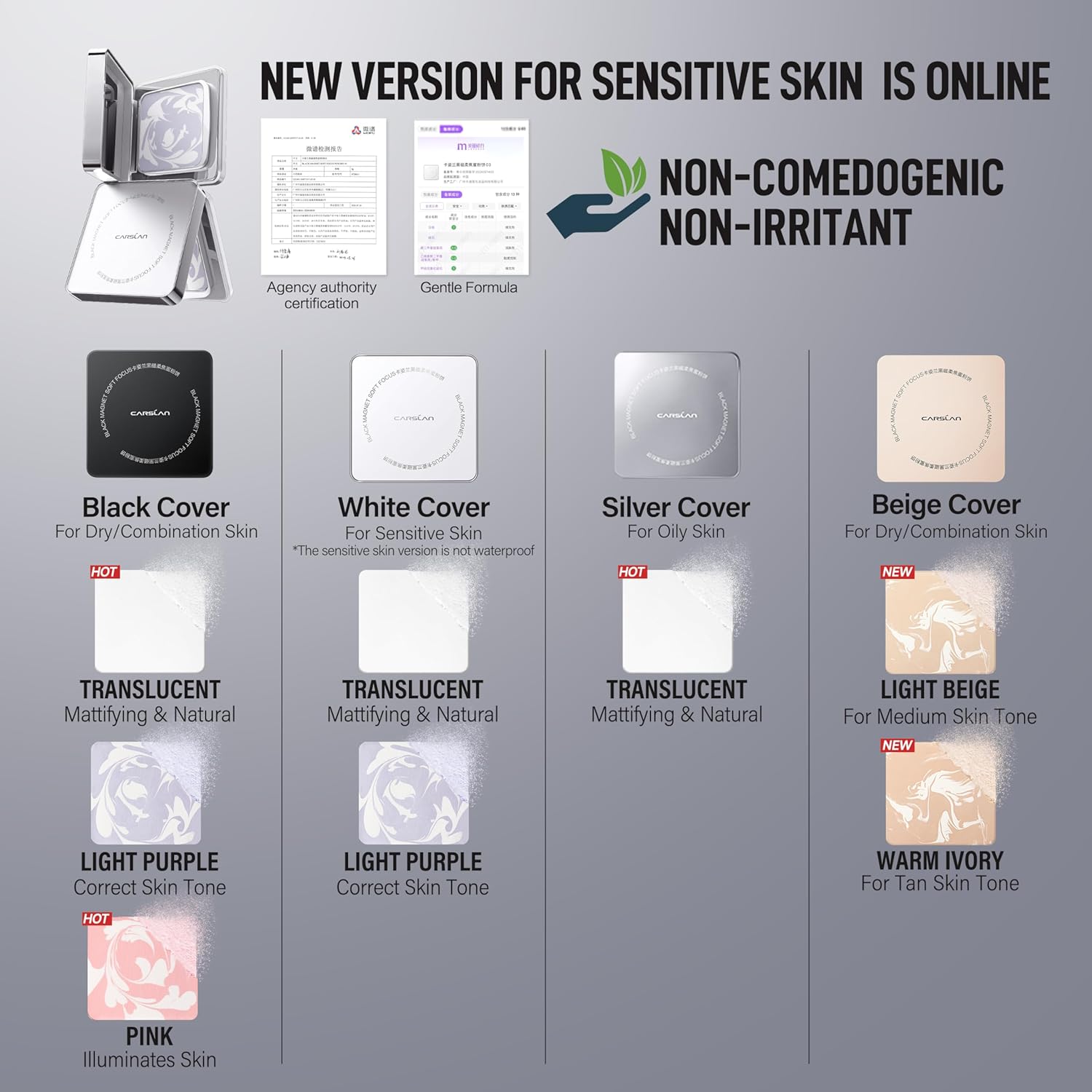 CARSLAN 2.0 Black Magnet Soft Focus Powder, Waterproof Translucent Pressed Setting Powder, 24H Longlasting Talc-Free Face Powder, Oil Control Compact Makeup,03 Blue Purple For Sensitive Skin, 0.28Oz