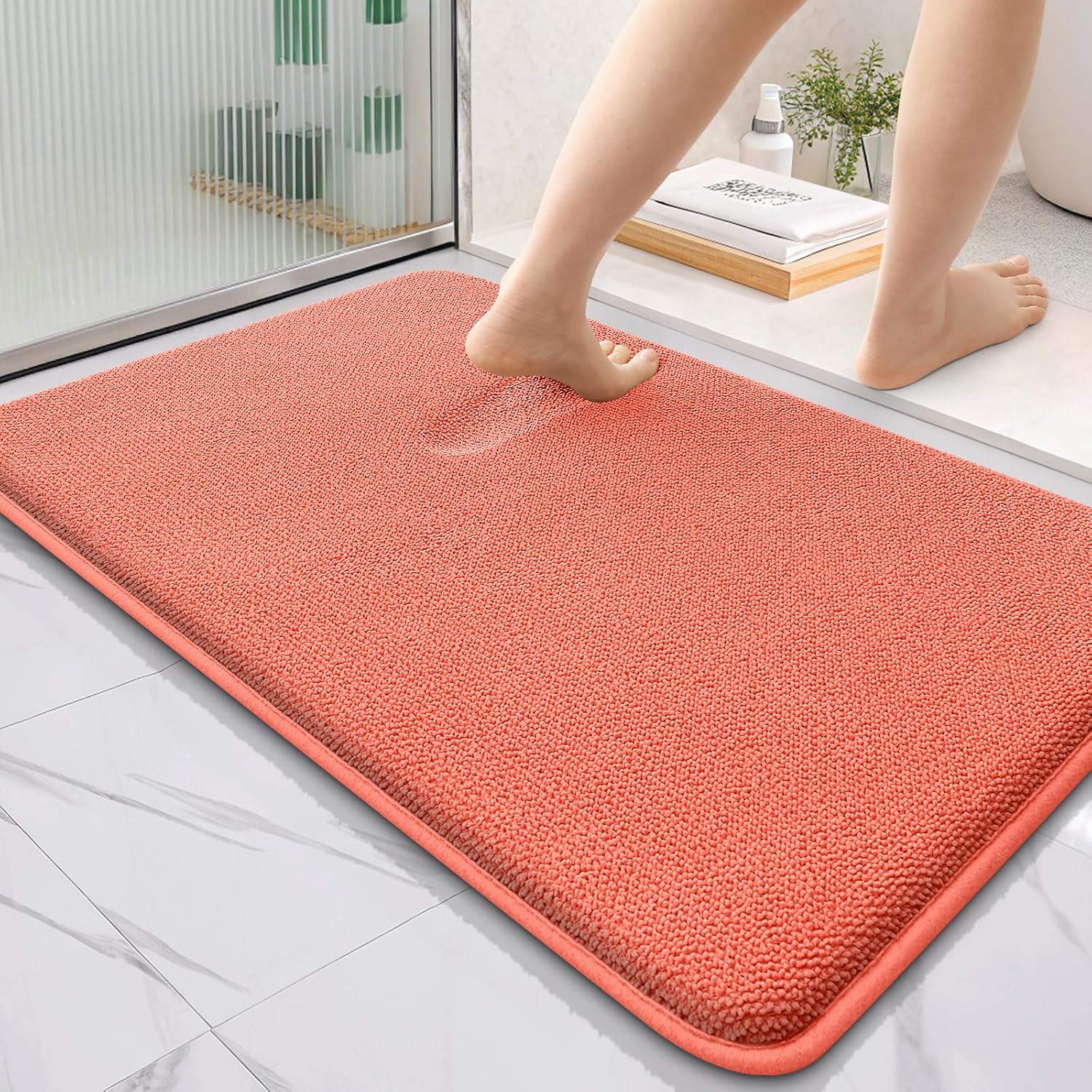 OLANLY Thick Memory Foam Bath Mat Rug 36x24, Extra Soft Absorbent Bathroom Rug, Quick Dry Bath Mats, Non-Slip, Machine Washable Carpet for Bathroom, Tub and Shower, Home Decor Accessories, Coral