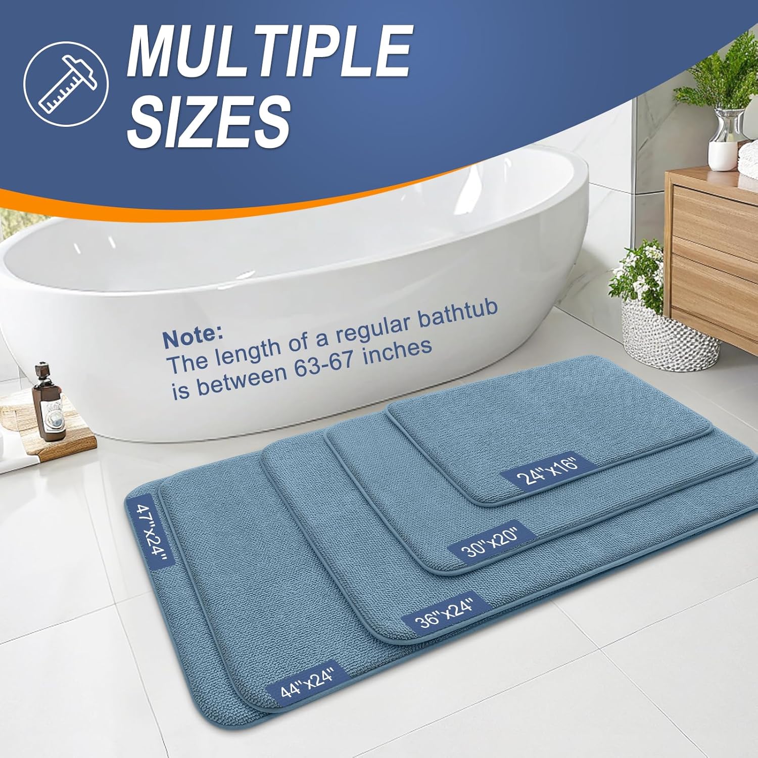 OLANLY Thick Memory Foam Bath Mat Rug 24x16, Extra Soft Absorbent Bathroom Rug, Quick Dry Bath Mats, Non-Slip, Machine Washable Carpet for Bathroom, Tub and Shower, Home Decor Accessories, Airy Blue