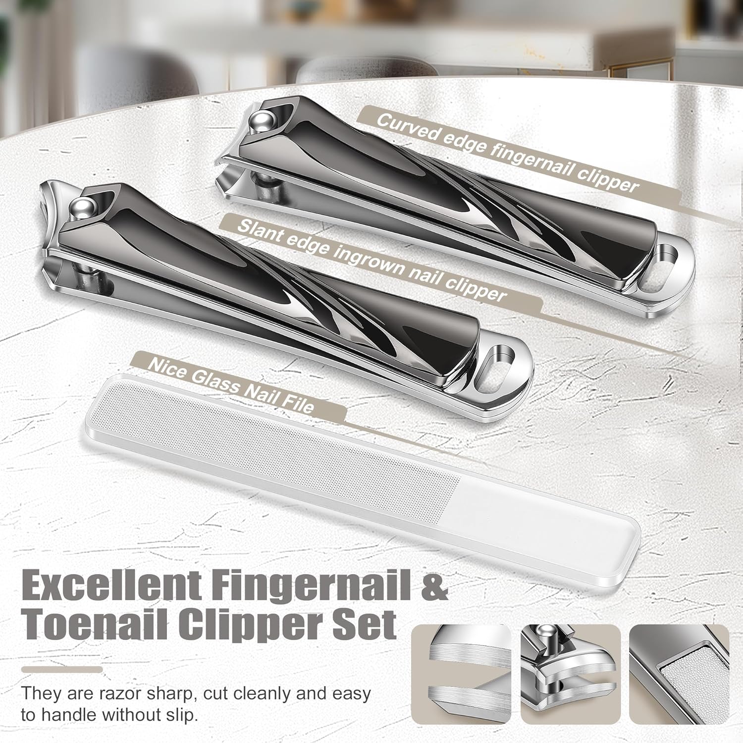 - Function Design : finernail and toenail clipper set is designed for thick and ingrown nails, providing versatility for various nail shapes and thicknesses. Additionally, the nail clipper set includes a nail file to shape and smooth nail edges, offering comprehensive nail care for adults.