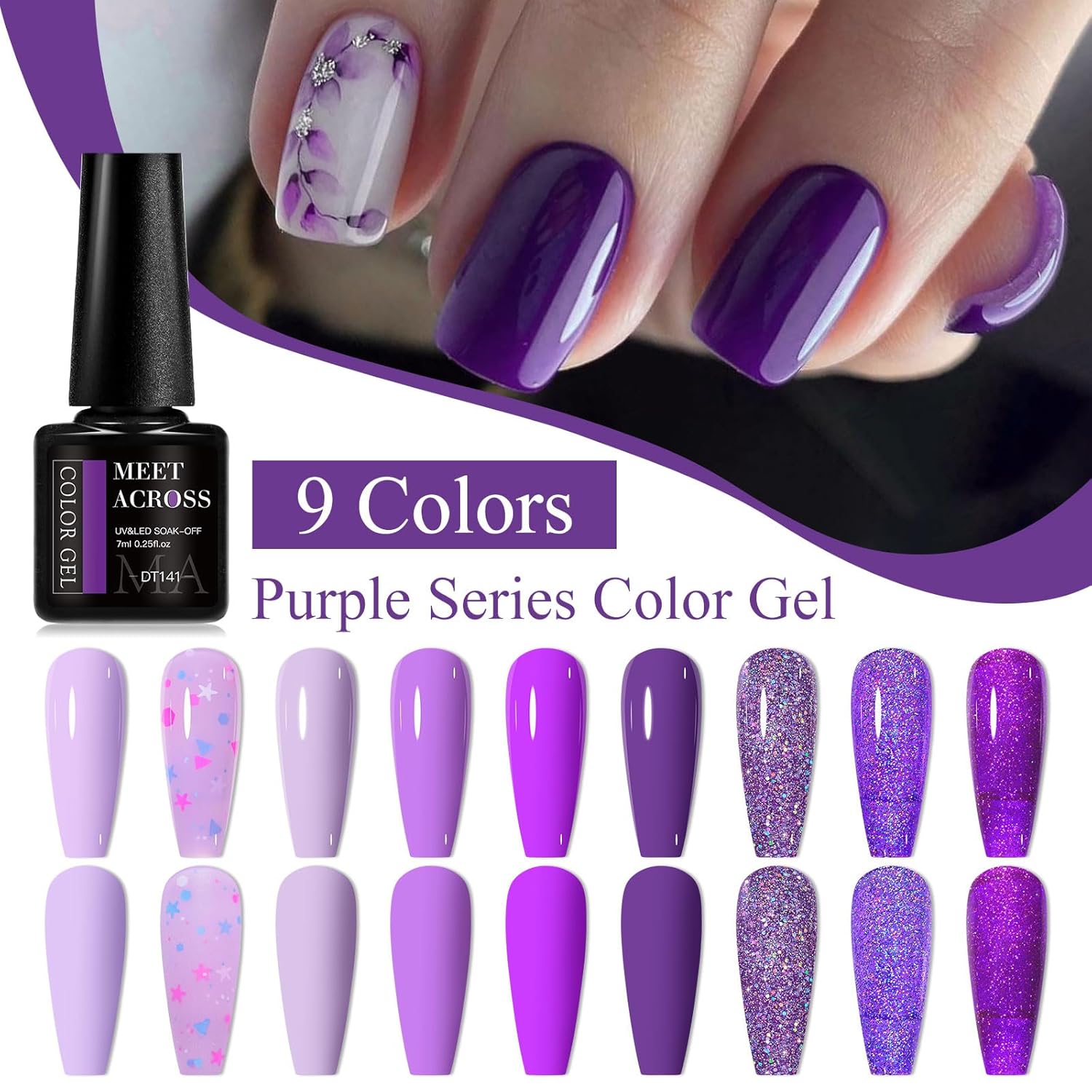 MEET ACROSS 9 Colors Gel Nail Polish + 3PCS Function Gel Nail Polish Kit,Fashion Nail Art Set Design Gifts for Women Manicure Salon (SET2, 12pcs)